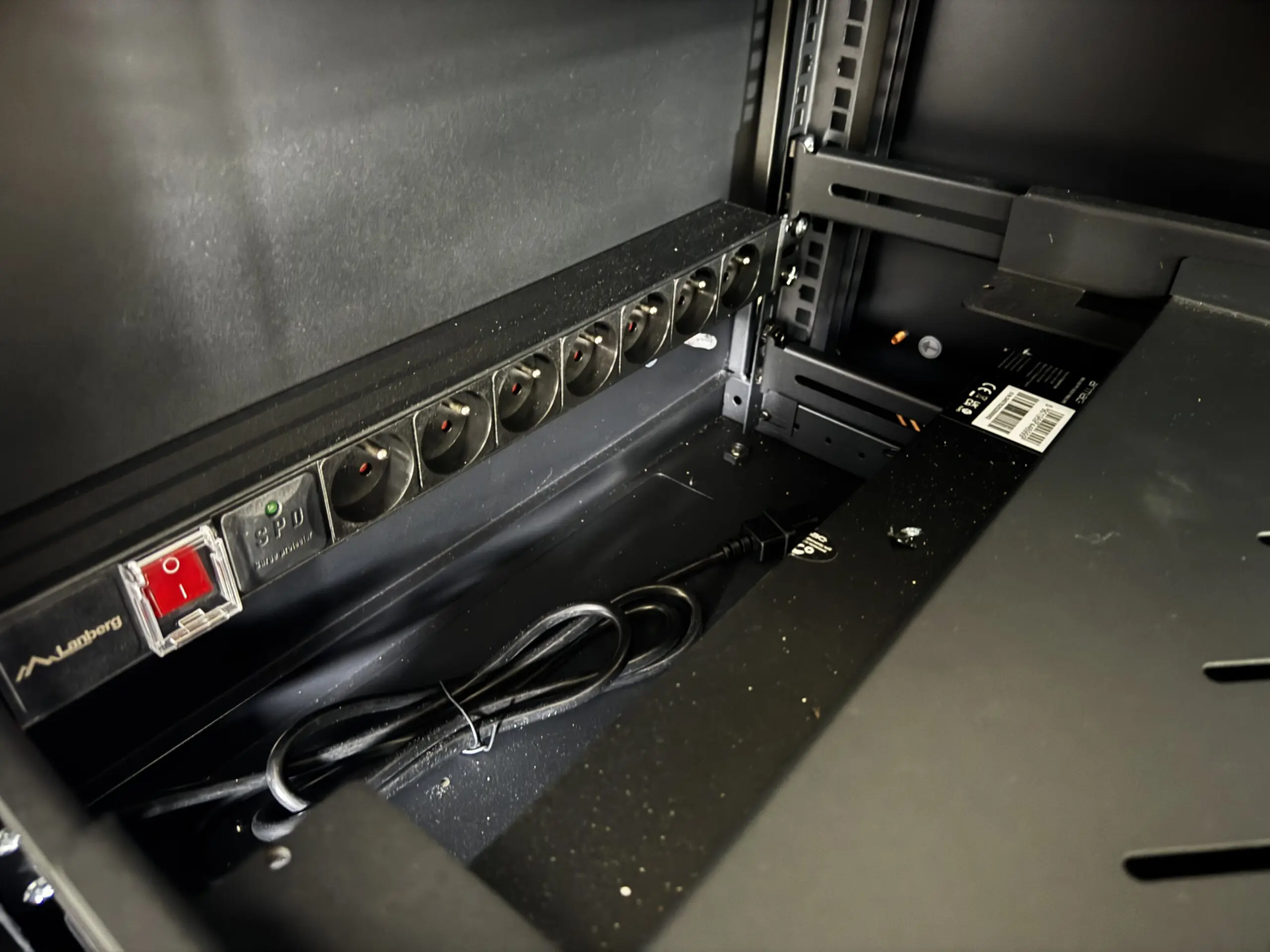 - Dystrybucja zasilania: listwa PDU Lanberg 1U 10A