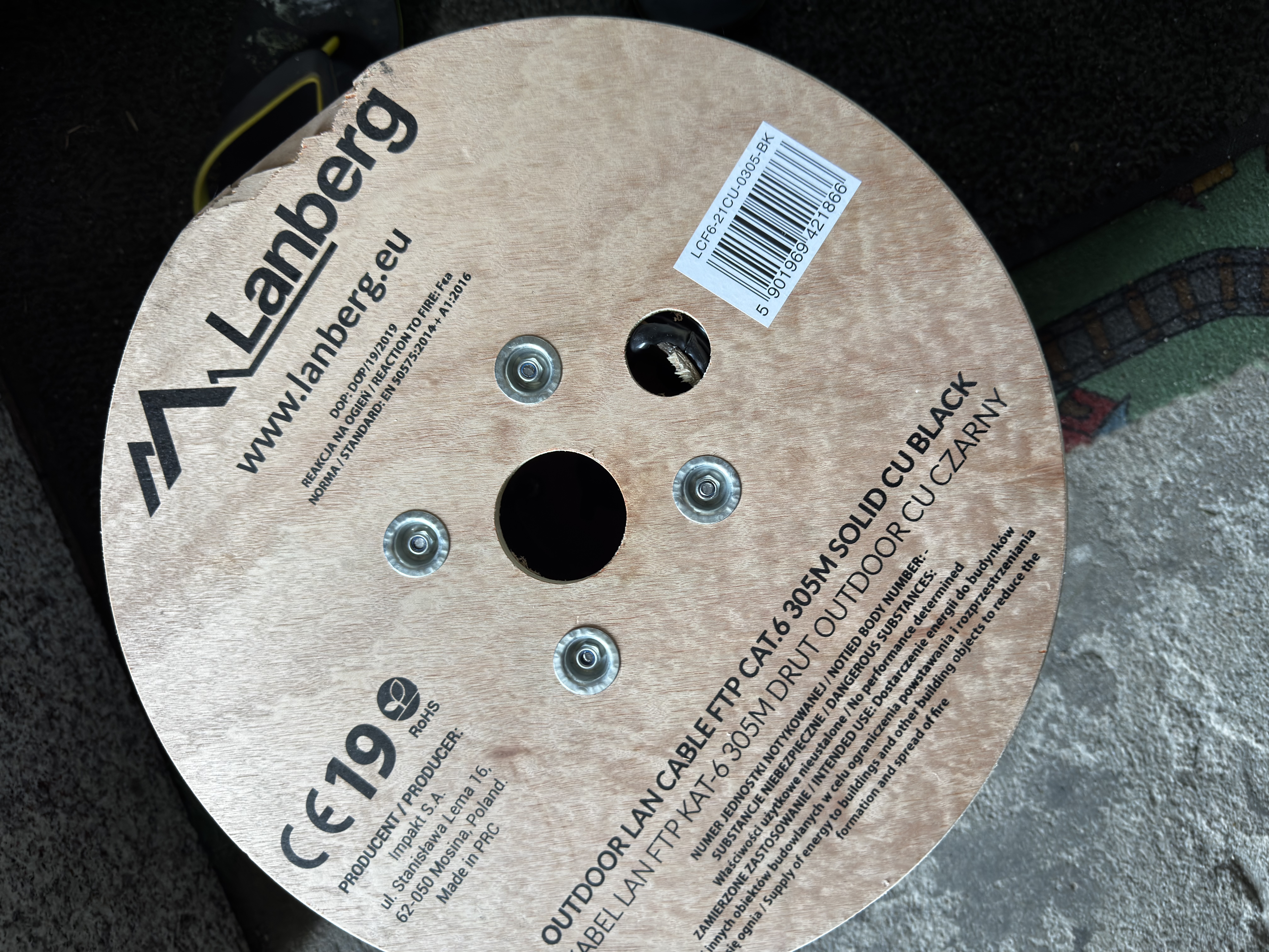- Okablowanie: 305 metrów Kat. 6 FTP outdoor