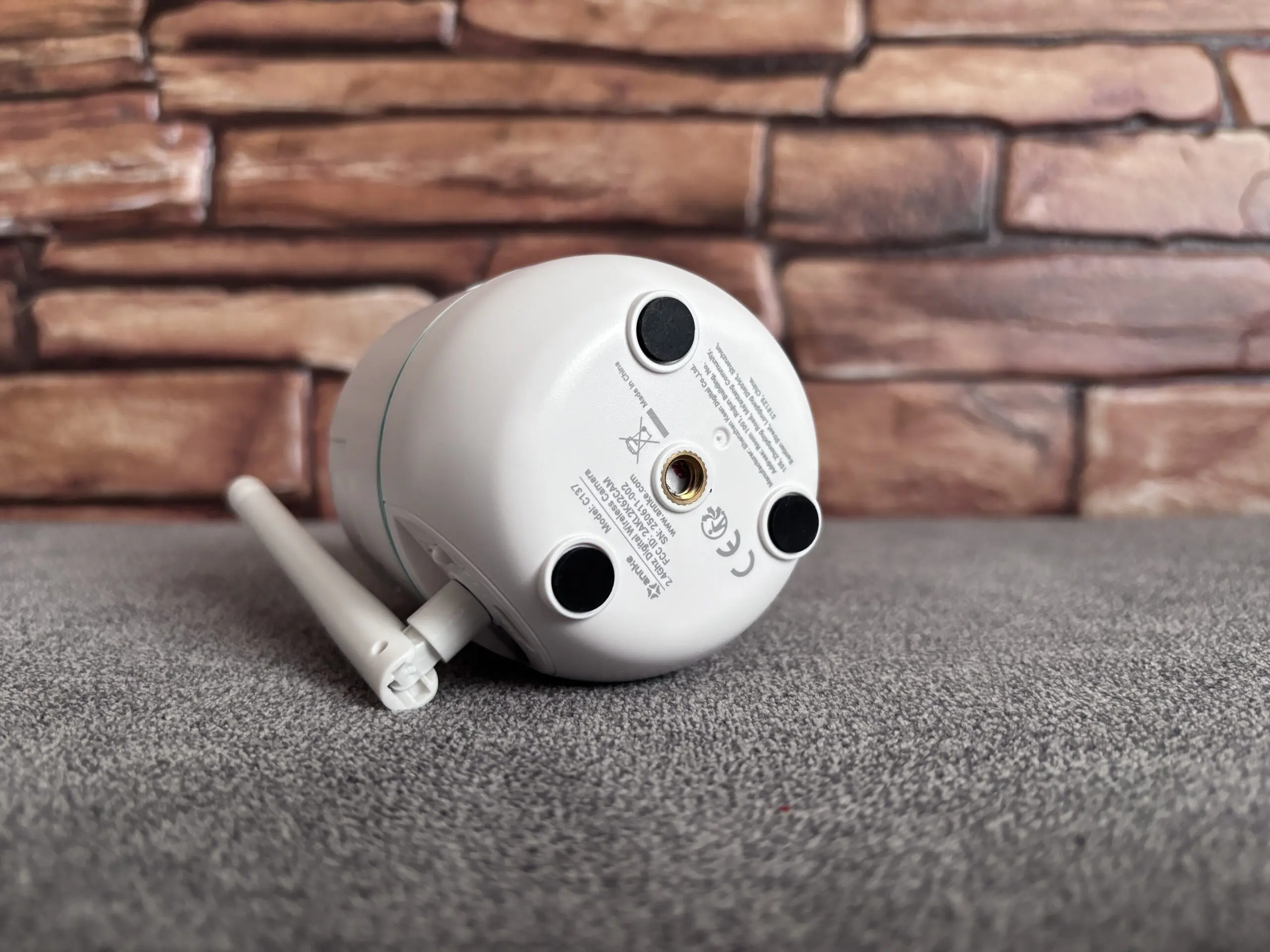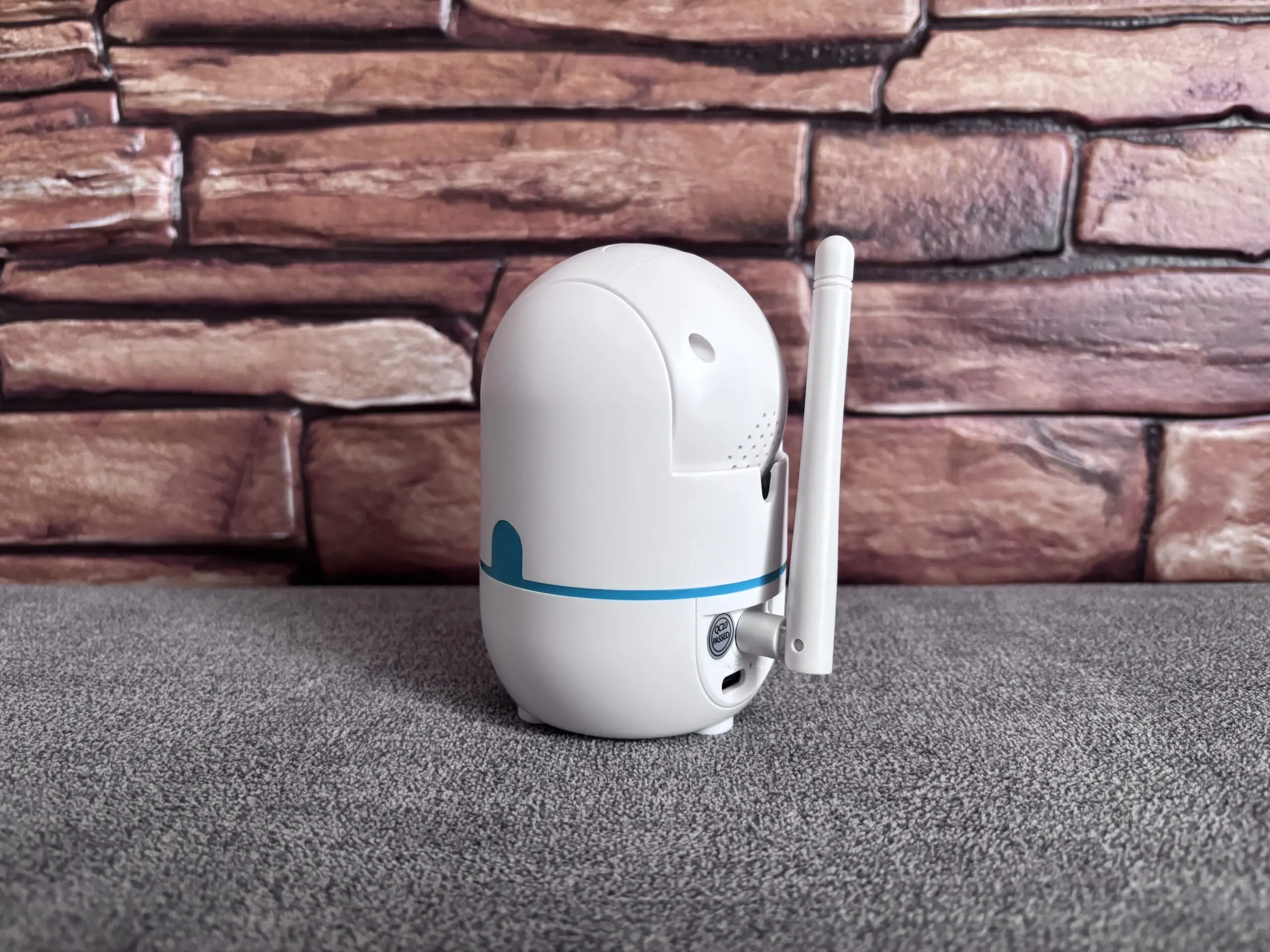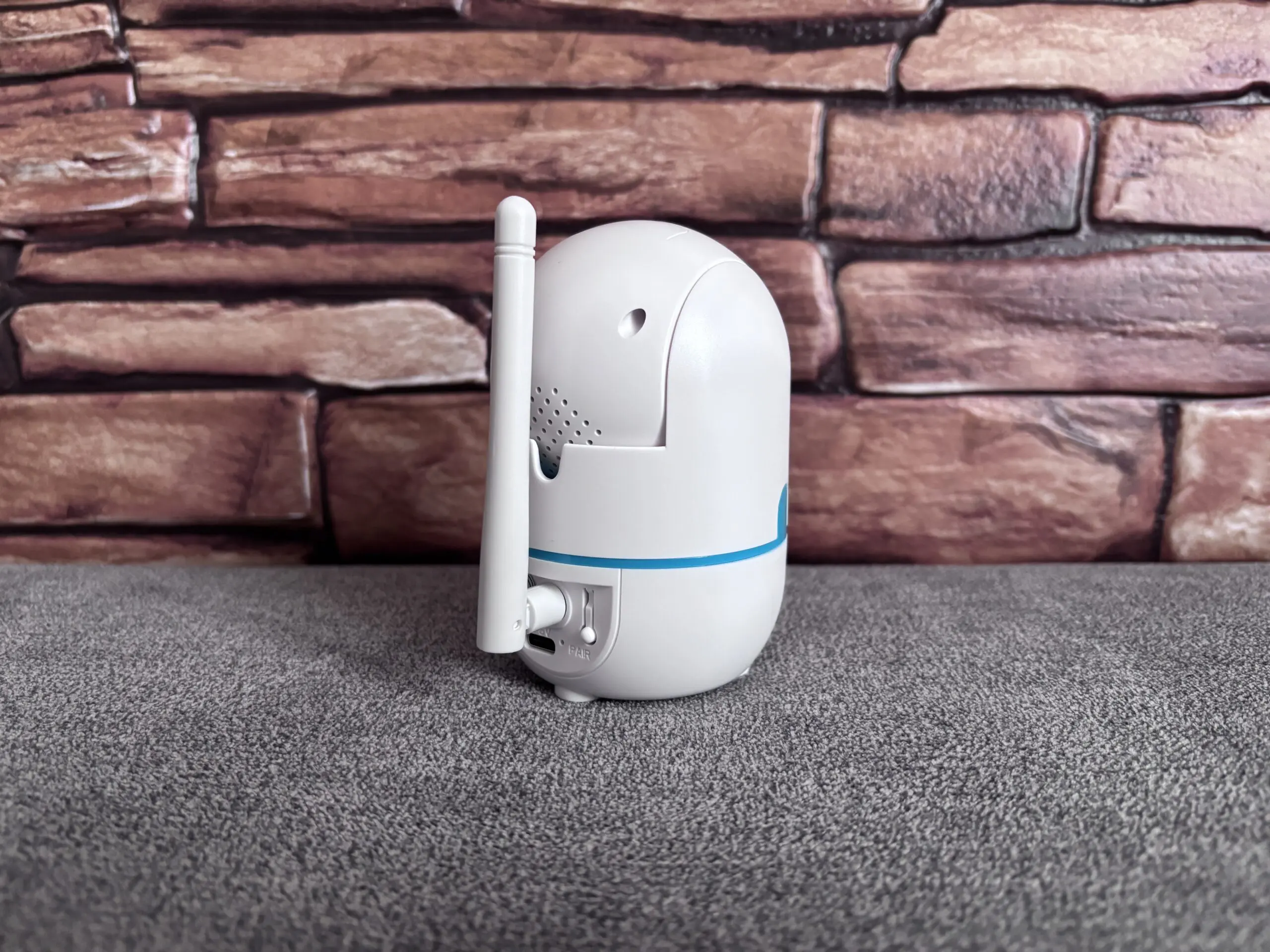Konstrukcja opiera się na stabilnej podstawie, która umożliwia ustawienie kamery na półce lub komodzie. Dzięki możliwości montażu ściennego kamera może zostać umieszczona również wyżej, zapewniając optymalny kąt widzenia na całe łóżeczko.
