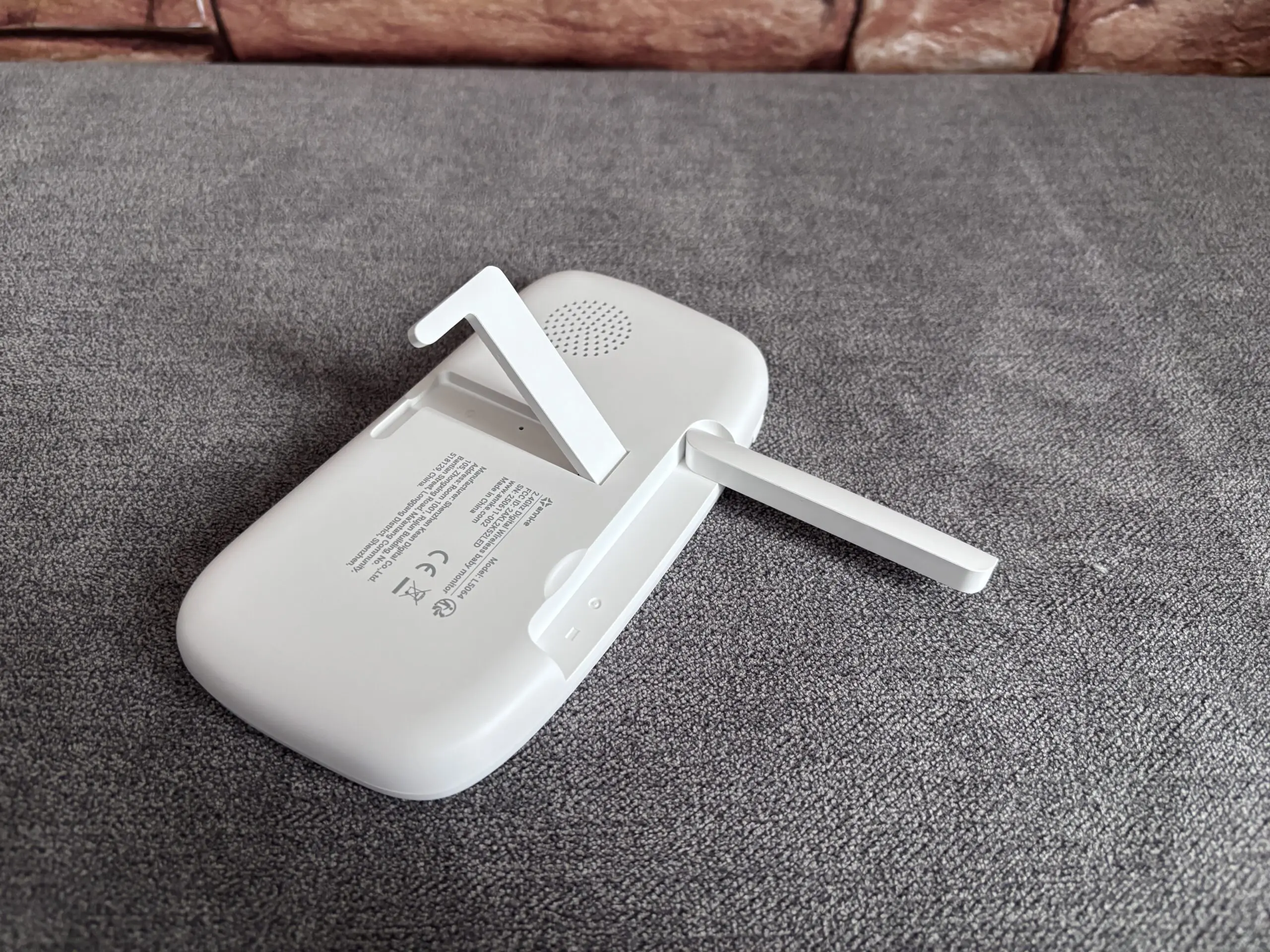 Z tyłu urządzenia miejsce znalazł głośnik, rozkłada antena i podnóżek. Złożone licują się z powierzchnią obudowy.