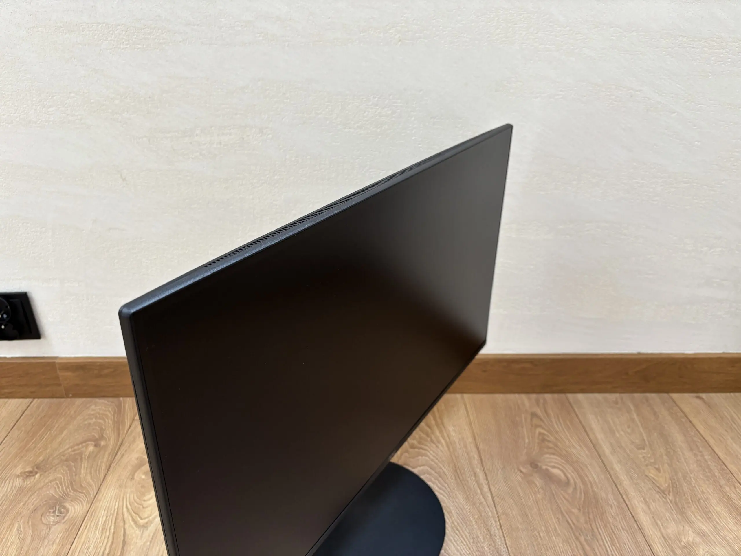Wyjmując monitora z pudełka, od razu rzuca się w oczy schludna, stonowana stylistyka – matowa czarna obudowa, bardzo wąskie ramki po bokach i na górze. To wszystko daje przyjemny efekt wizualny, zwłaszcza jeśli planujesz wielomonitorową konfigurację.