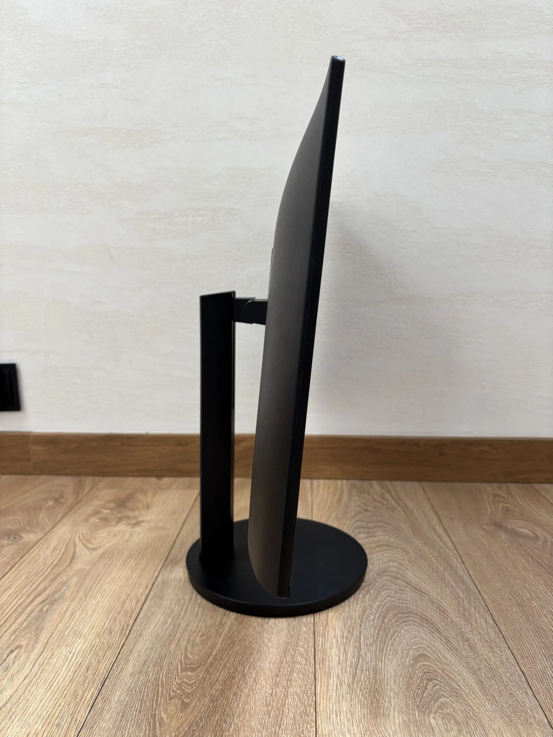 Stojak z regulacją wysokości (~110 mm) to dobre minimum. Mogłem ustawić ekran w wygodnej dla siebie wysokości. Jednak brak pivotu i ograniczona regulacja kąta to minus… Czasem chciałbym obrócić ekran pionowo albo mieć więcej nachylenia. Przy pracy z wieloma oknami mogłoby się przydać. Złącze USB-C zasilające laptop i przekazujące wideo to ogromne ułatwienie w stacji roboczej – jeden kabel = mniej bałaganu, co przy moim zestawie z wieloma urządzeniami bardzo cenię.