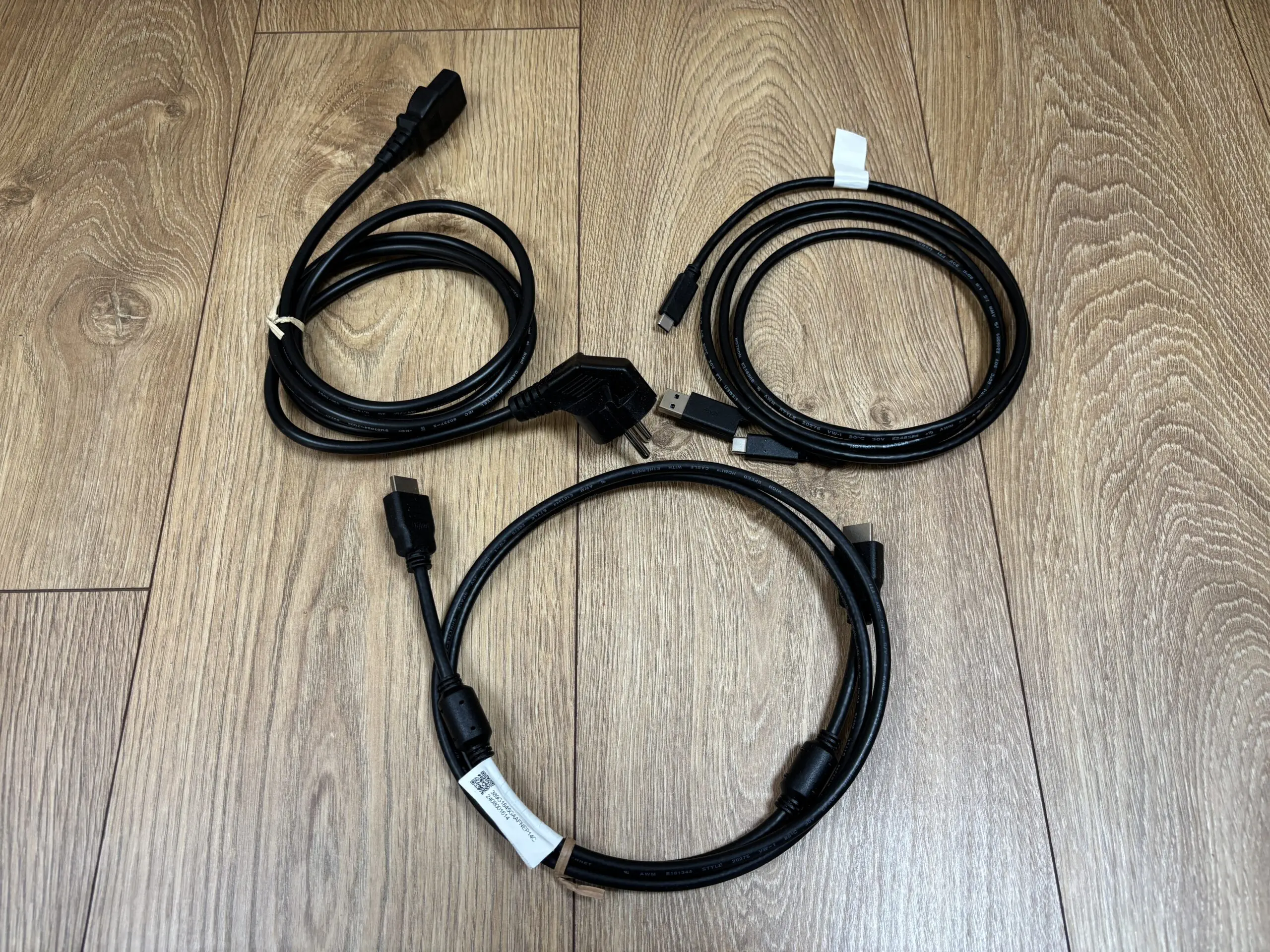 Producent do monitora dodaje jedynie 3 kable. Jest to absolutne minimum aby móc zacząć przygodę z monitorem. Plus za kabel USB PD.