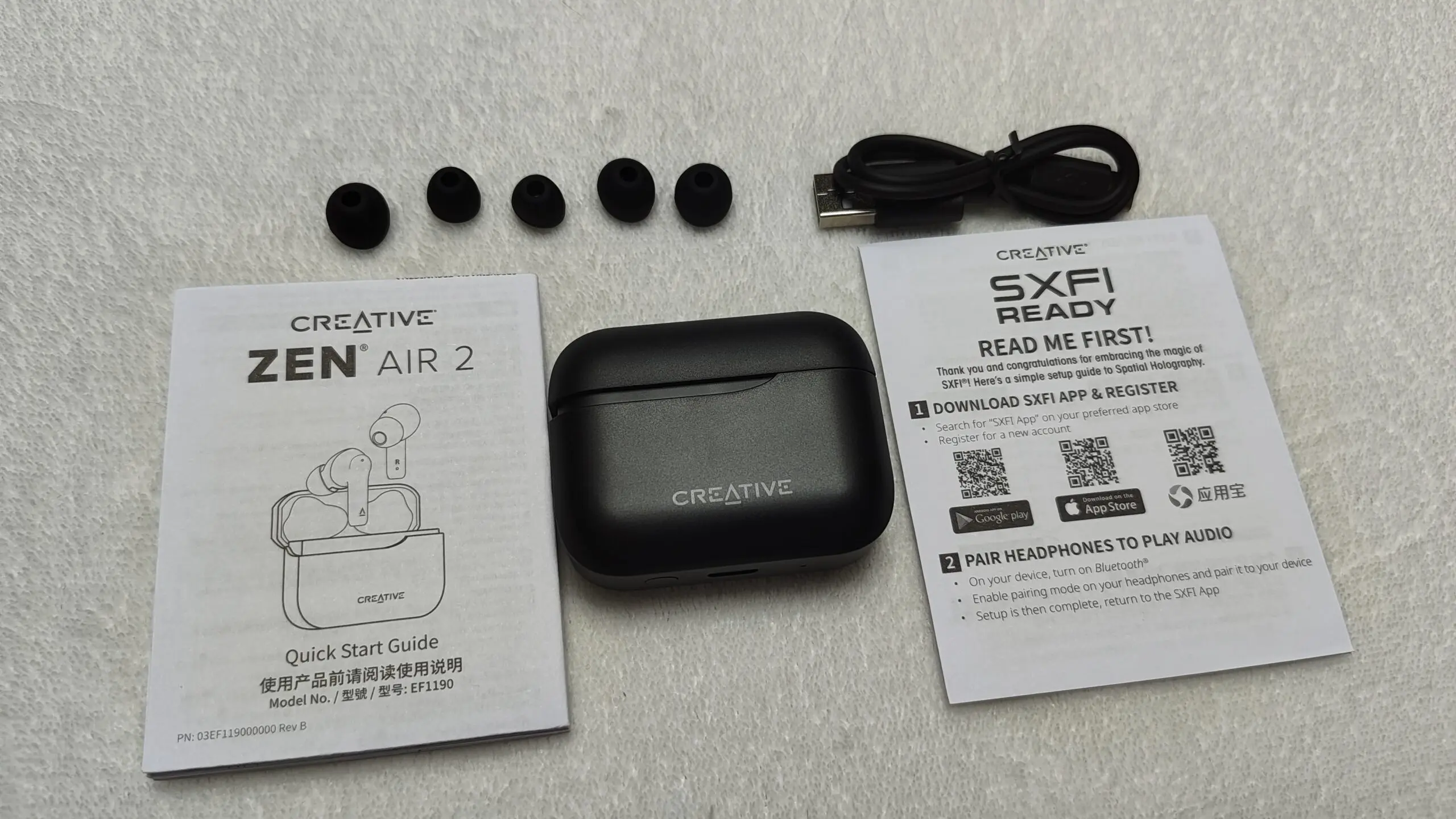 Słuchawki Creative Zen Air 2 mimo dość sporych rozmiarów bardzo pewnie i lekko leżą w uszach. Podczas spaceru czy słuchania z jednoczesnym wykonywaniem jakichś czynności, w ogóle ich nie czuć, co jest sporym plusem. Niestety ruchy twarzą, szczególnie podczas śmiechu, sprawiają, że słuchawki wypadają z ucha i trzeba je poprawić, by nie spadły nam przy pochyleniu głowy lub wstrząsie.