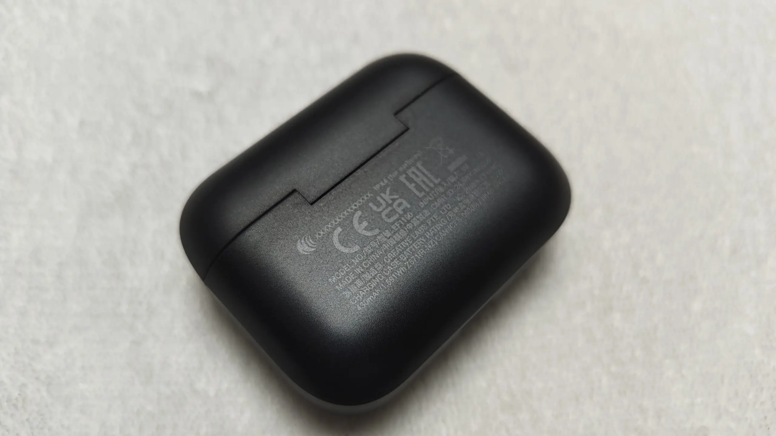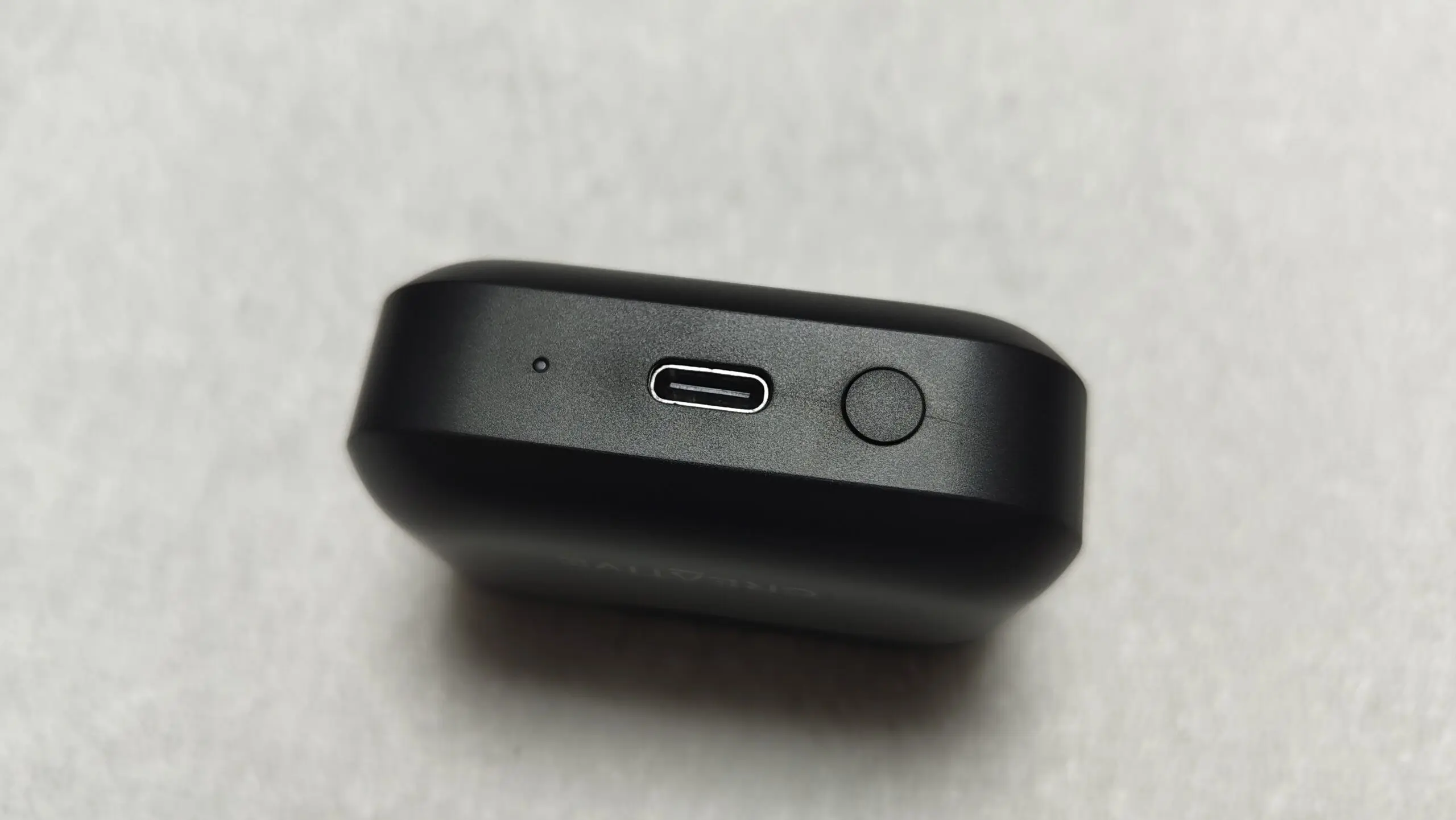 Pudełko natomiast zostało wyposażone w port USB-C służący do ładowania, diodę LED oraz przycisk do sprawdzania stanu baterii. Wszystkie te elementy znalazły się na spodzie pudełka. Informacje prawne wylądowały natomiast na pleckach.