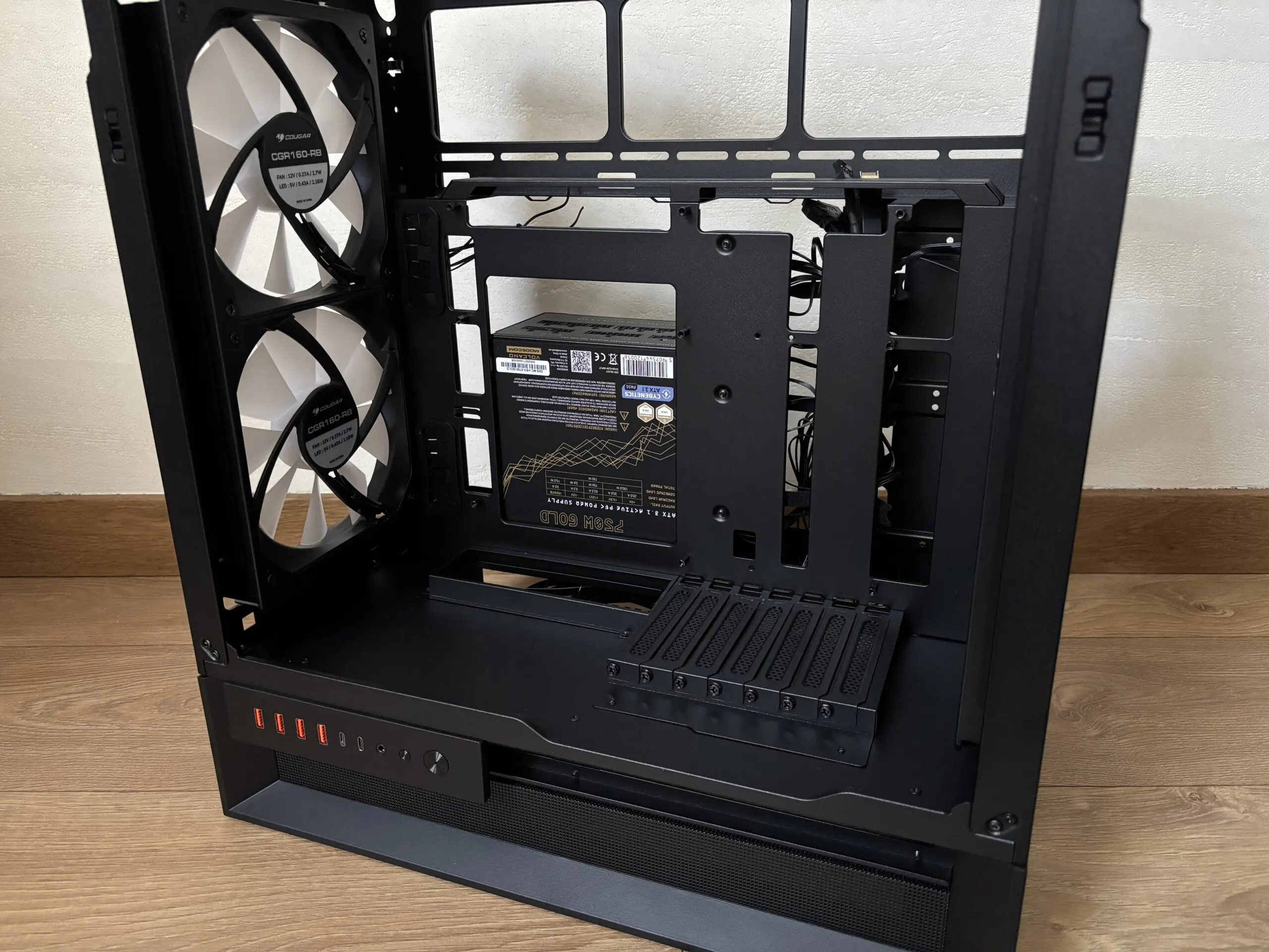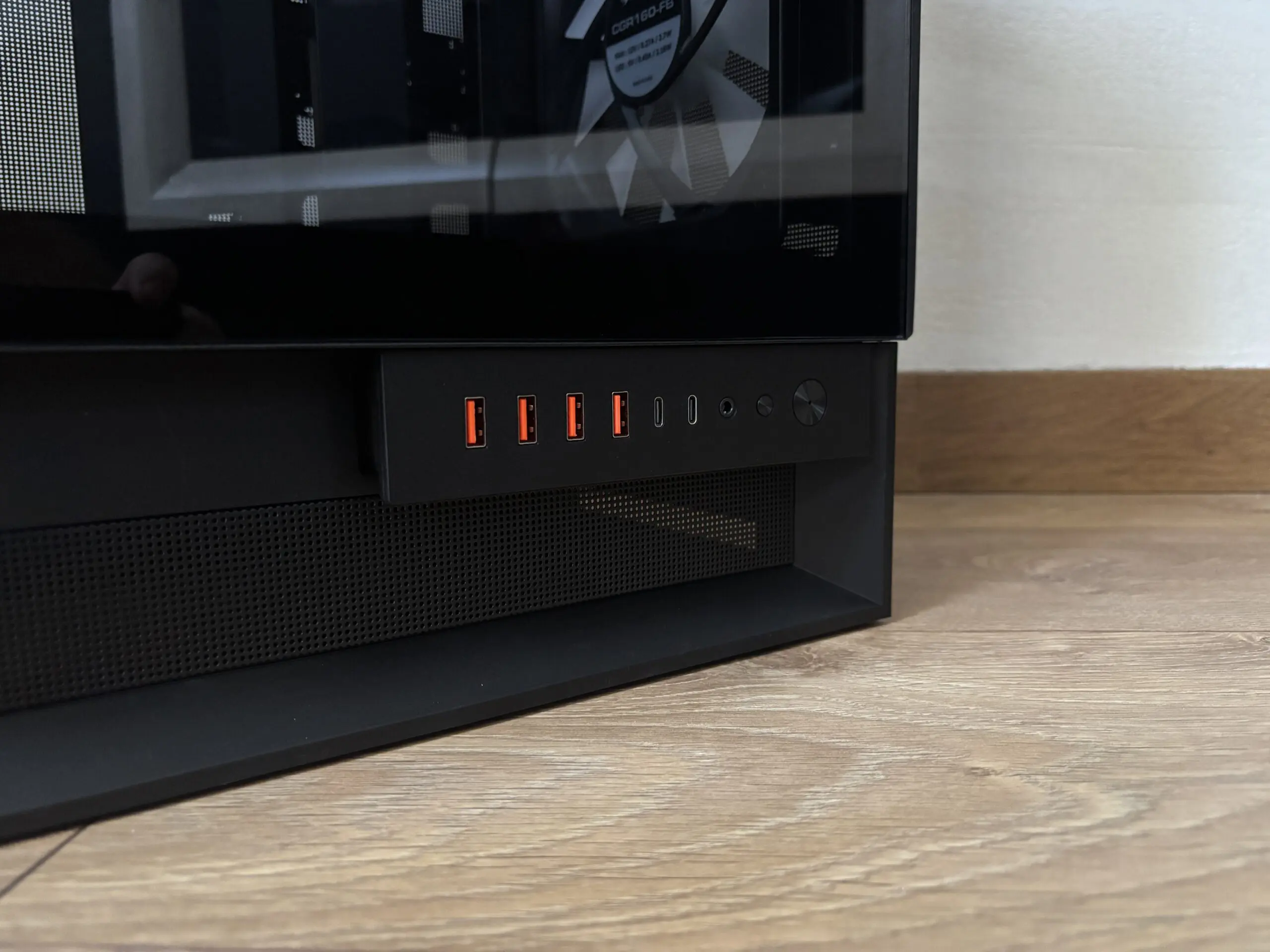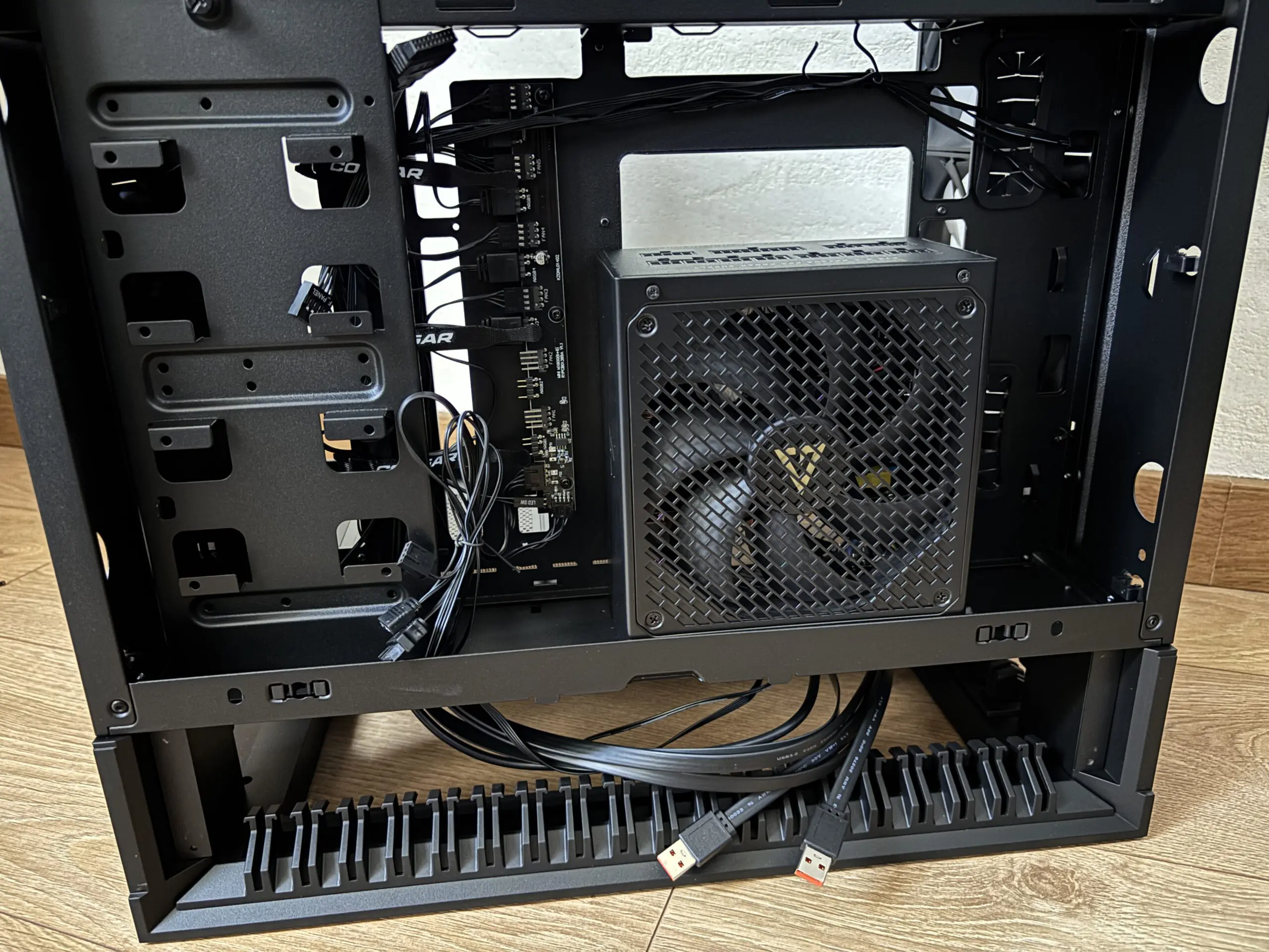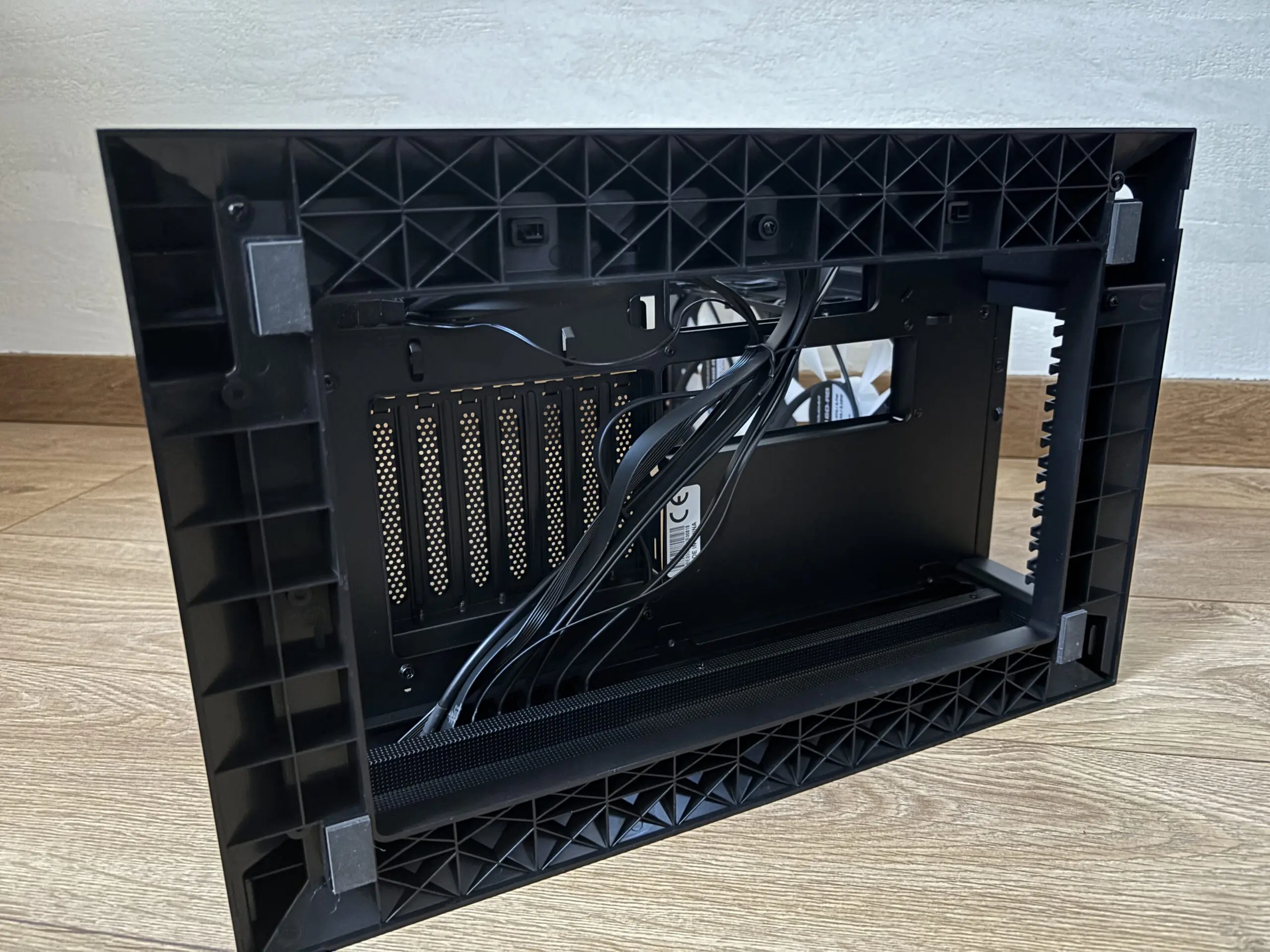 Obudowa stoi stabilnie na 4 podgumowanych nóżkach. Ten element wygląda najbardziej zachowawczo. Jest tutaj dużo przestrzeni aby łatwo wygiąć kable i przepuścić je tyłem.