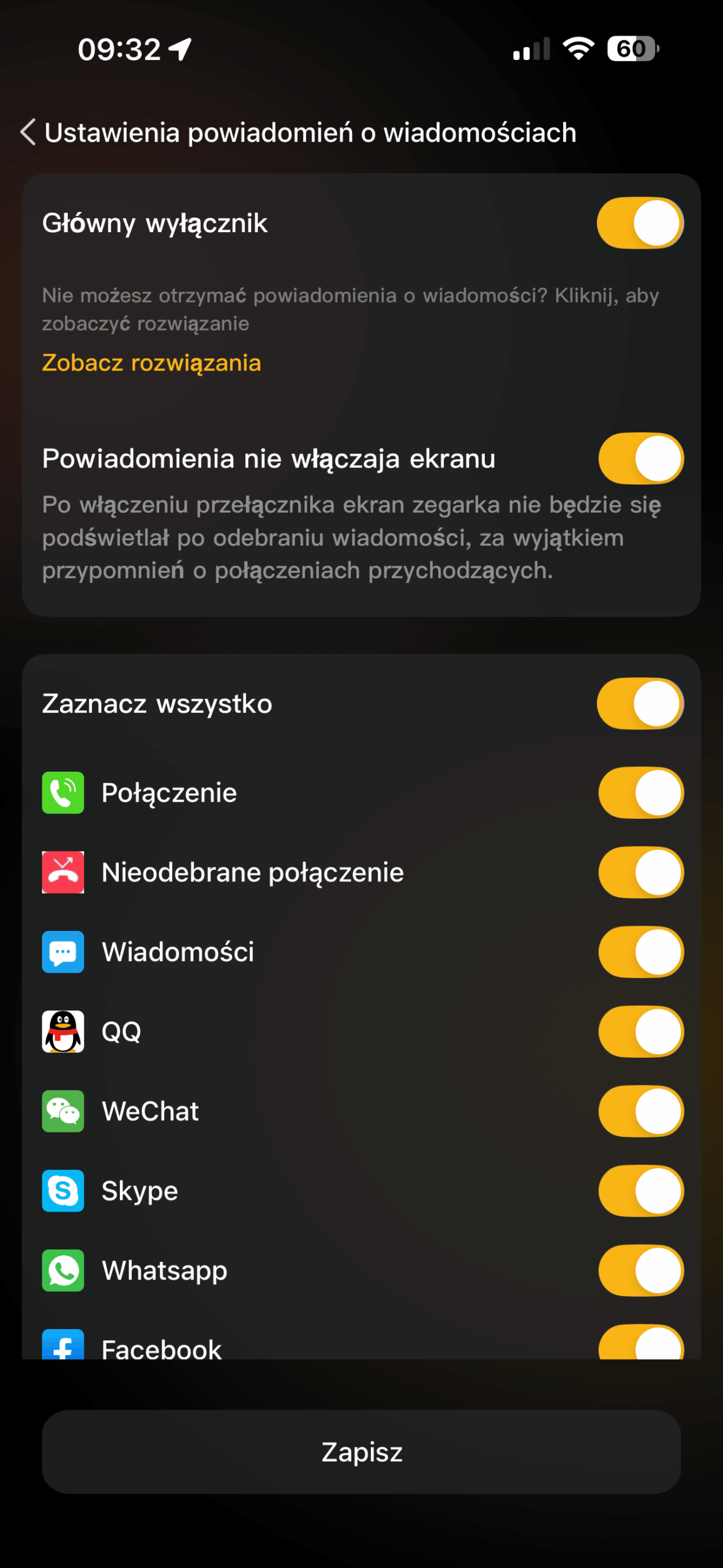 Aplikacja działa stabilnie – po sparowaniu zegarka z telefonem synchronizacja przebiegała sprawnie. Ustawienie trybu sportowego, zmiana tarczy i szybkie spojrzenie na wykres snu – bez większych problemów.