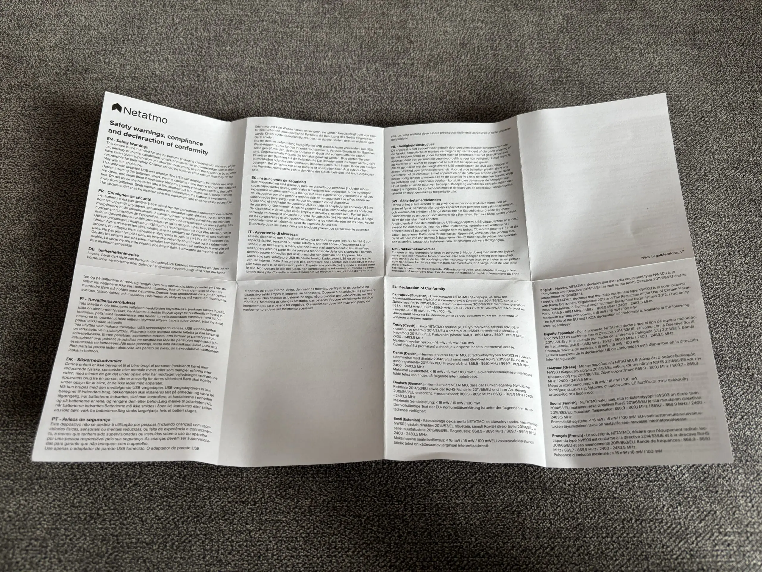 Oprócz czujników jakości powietrza znajdziemy jeszcze krótką instrukcję obsługi (a dokładniej to jednokartkowe „ostrzeżenia dotyczące bezpieczeństwa), zasilacz, baterie, kołek i rzep.