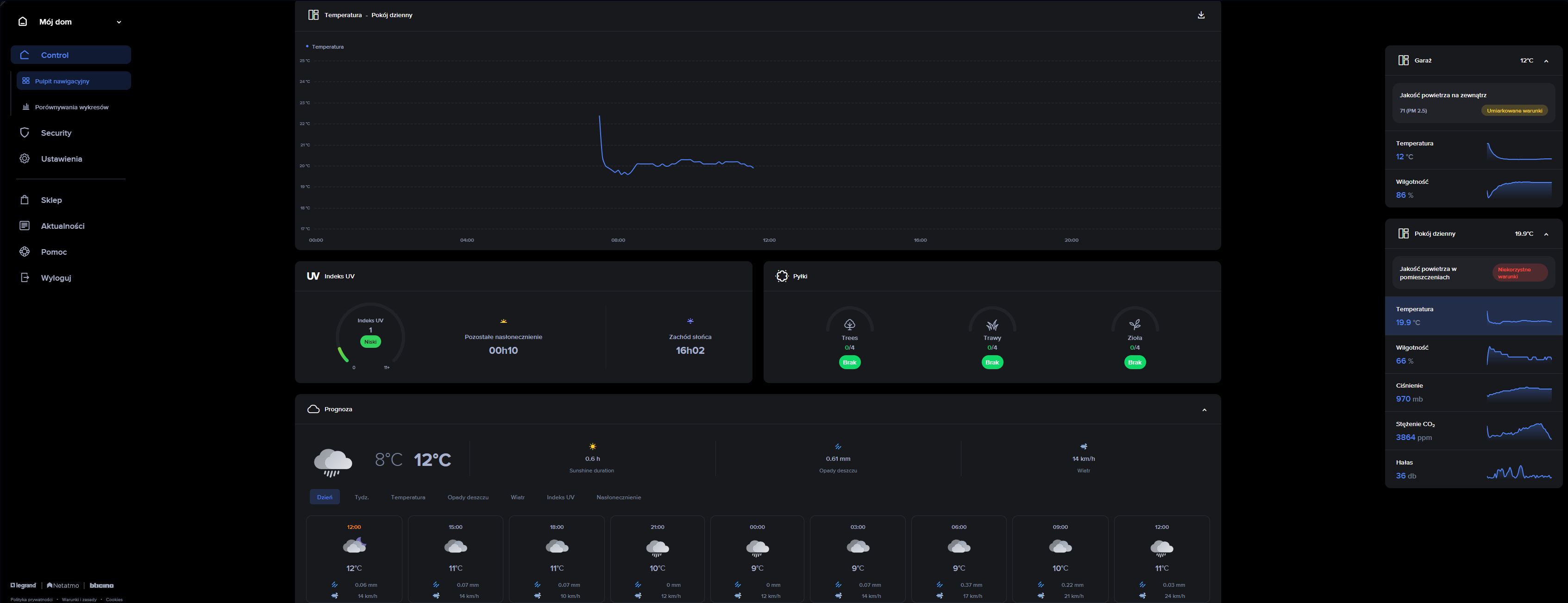 Aplikacja mobilna Netatmo to przykład świetnie zaprojektowanego oprogramowania: czytelne wykresy, dynamiczne kafelki z danymi i szybki dostęp do prognoz sprawiają, że codzienne korzystanie z niej to czysta przyjemność.