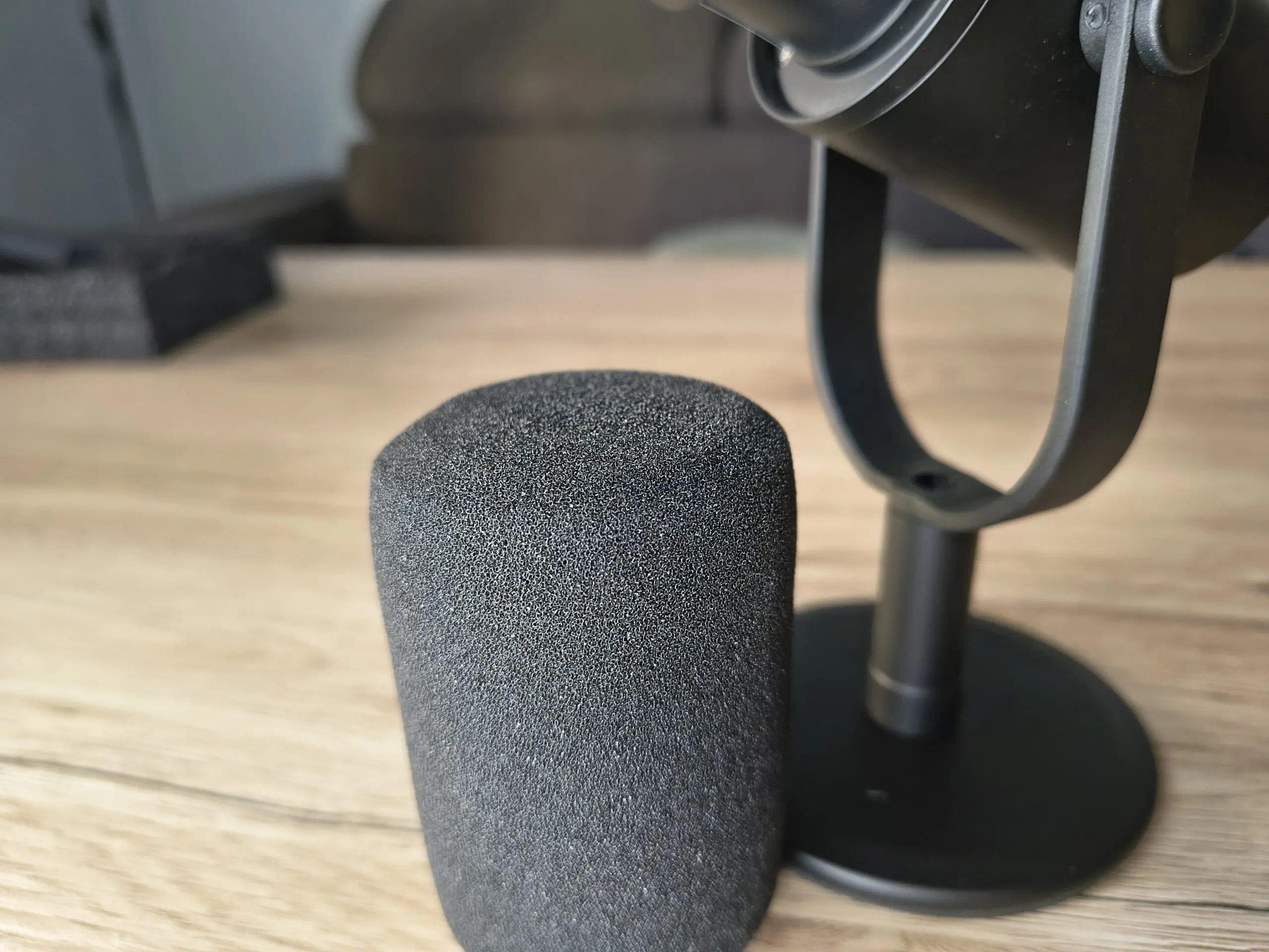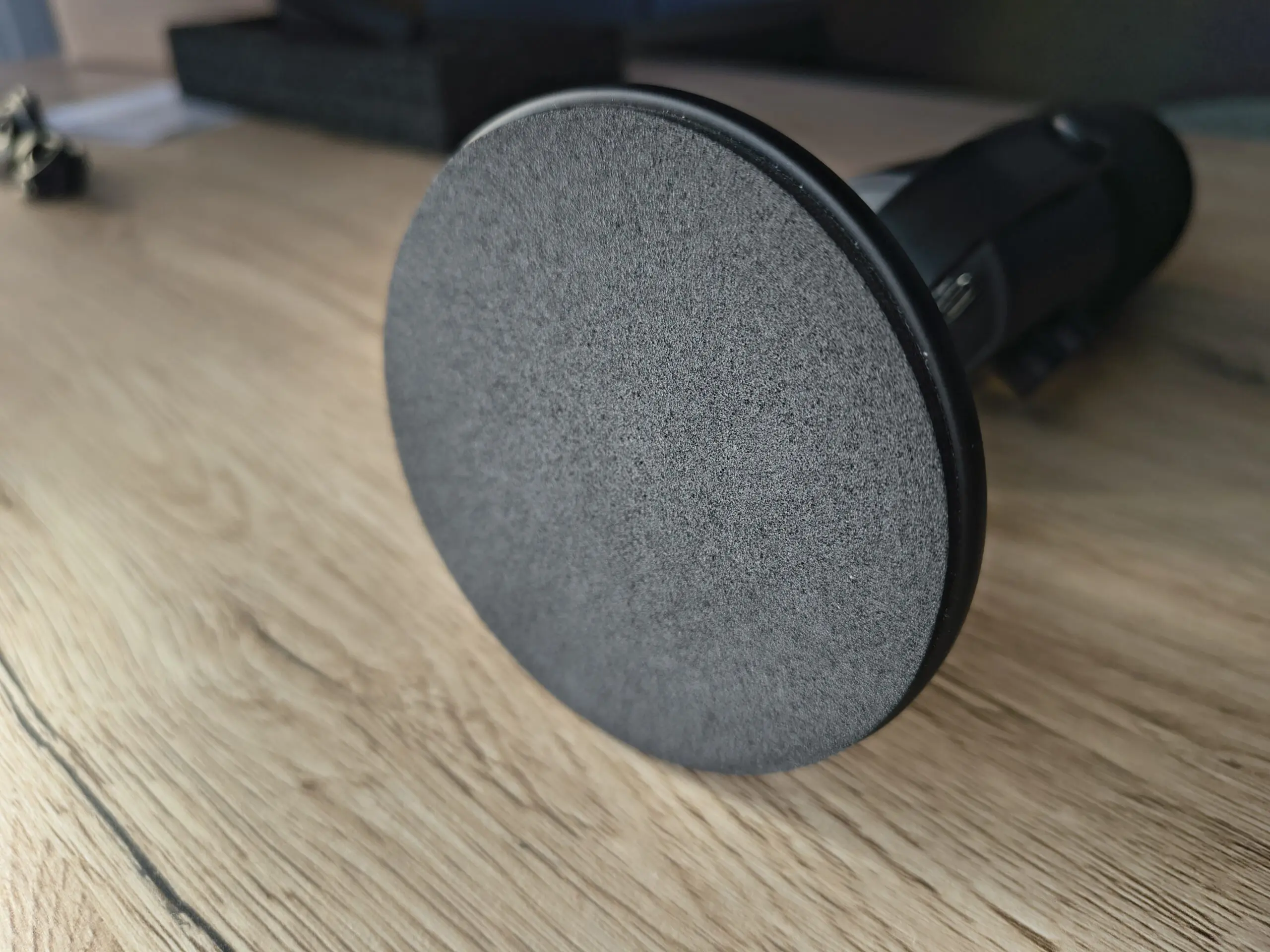 • Po drugie. Izolacja od drgań mogłaby być lepsza. Cienka warstwa pianki pod podstawą nie tłumi w pełni wibracji przenoszonych z biurka. Jeśli komputer stoi na blacie lub intensywnie piszemy na klawiaturze, mikrofon potrafi „złapać” te drgania. Nie jest to dramatyczne, ale w cichym nagraniu może być zauważalne.