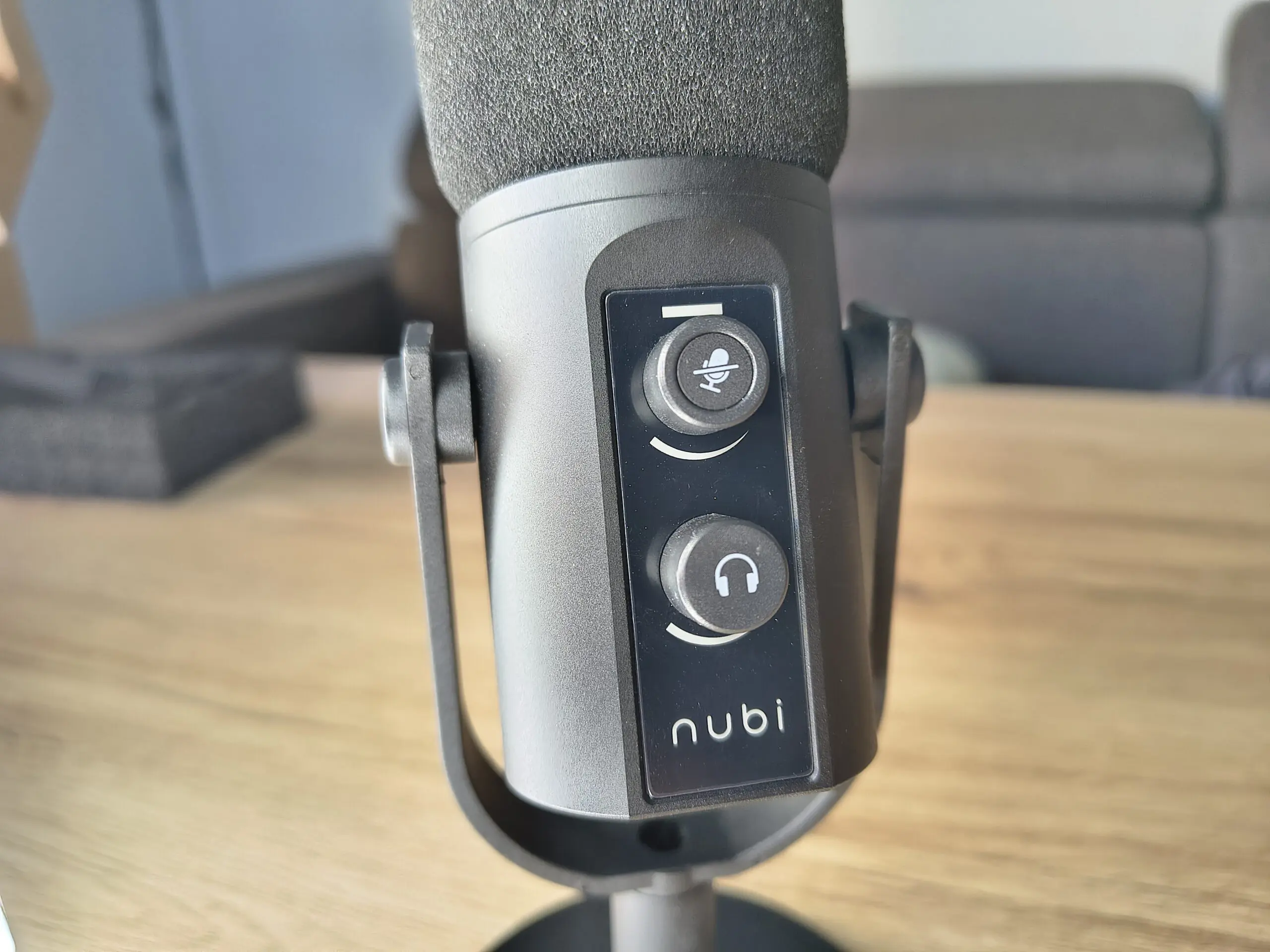 Nubi NMIC1 nie jest „gołym” mikrofonem bez kontroli. Producent wyposażył go w dwa pokrętła, które odpowiadają za najważniejsze funkcje podczas nagrywania: