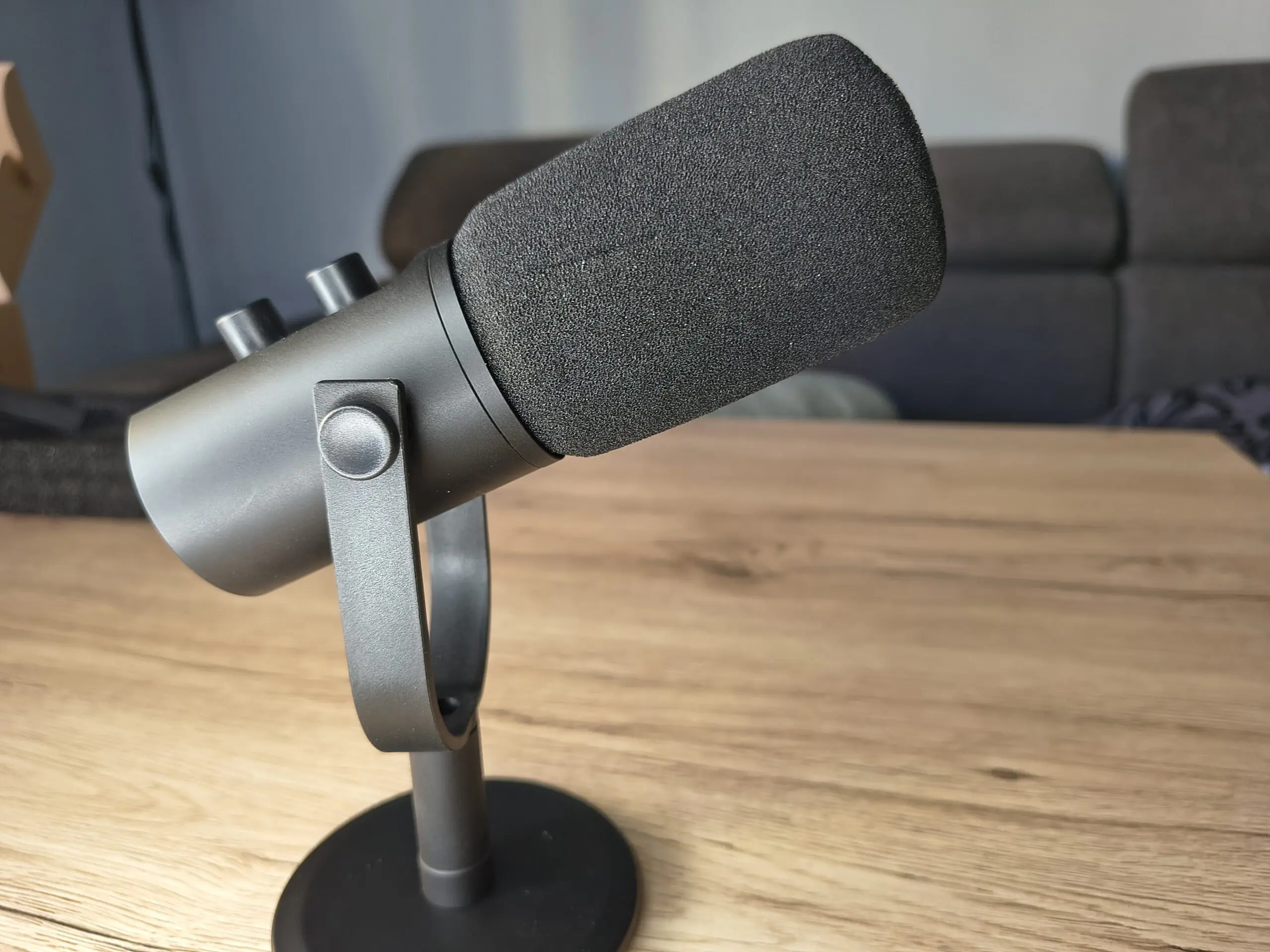 Znacznie ważniejsze jest to, że zastosowano tutaj przetwornik dynamiczny. A to oznacza większą odporność na wstrząsy, uszkodzenia mechaniczne i trudniejsze warunki pracy niż w przypadku mikrofonów pojemnościowych. W domowym środowisku to duży plus. Klawiatura, kliknięcia myszki czy typowe dźwięki pokoju nie są zbierane w przesadny sposób.