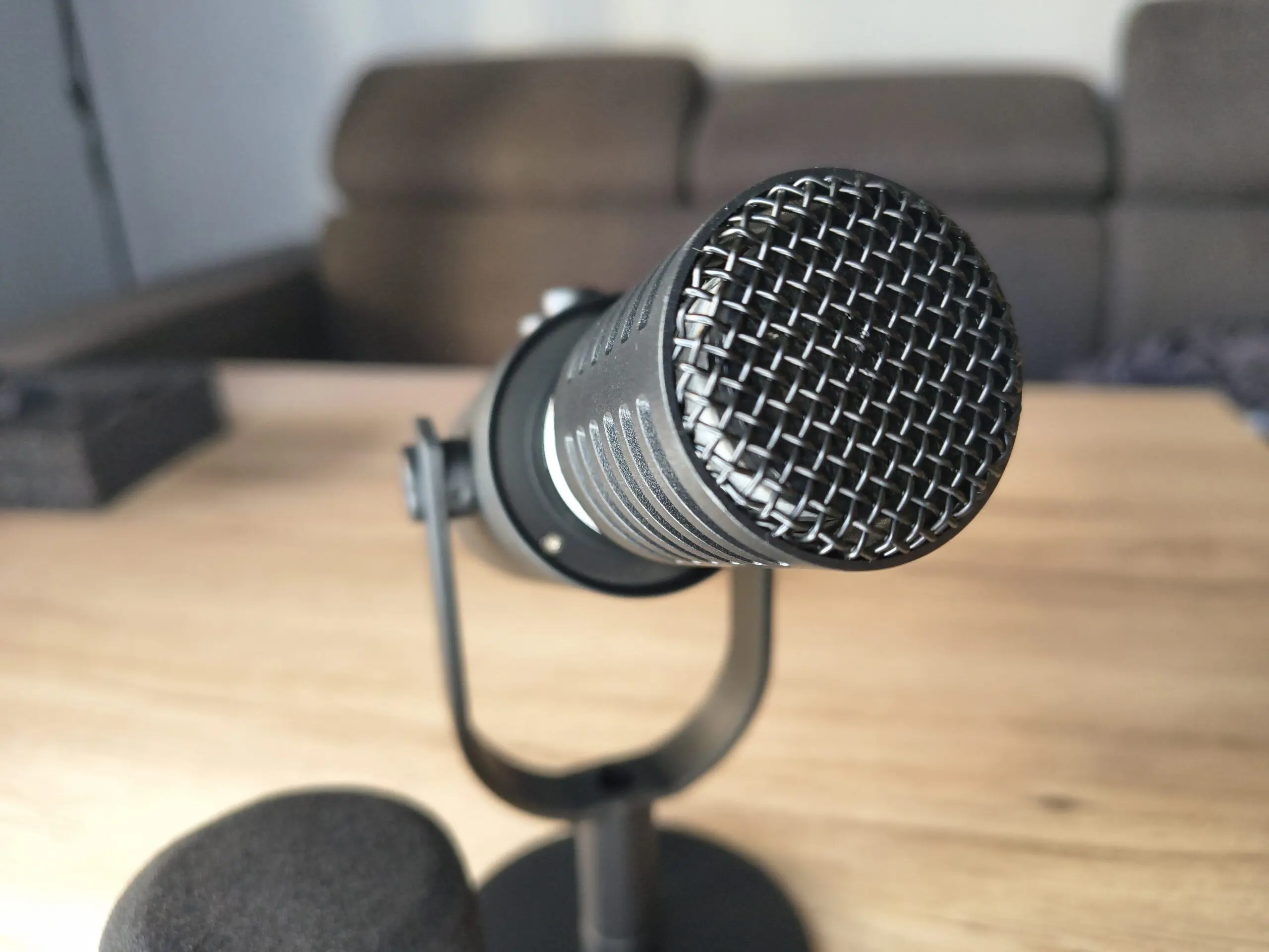 Ważna jest też charakterystyka kardioidalna. W praktyce oznacza to, że mikrofon najlepiej zbiera dźwięk z przodu, dlatego warto ustawić go tak, by jego górna część znajdowała się na wysokości ust. Odpowiedni kąt ustawienia ma ogromne znaczenie. Gdy mówimy bezpośrednio do niego, nagranie jest głośne i wyraźne, a dźwięki dochodzące z boków czy z tyłu są wyraźnie przytłumione.