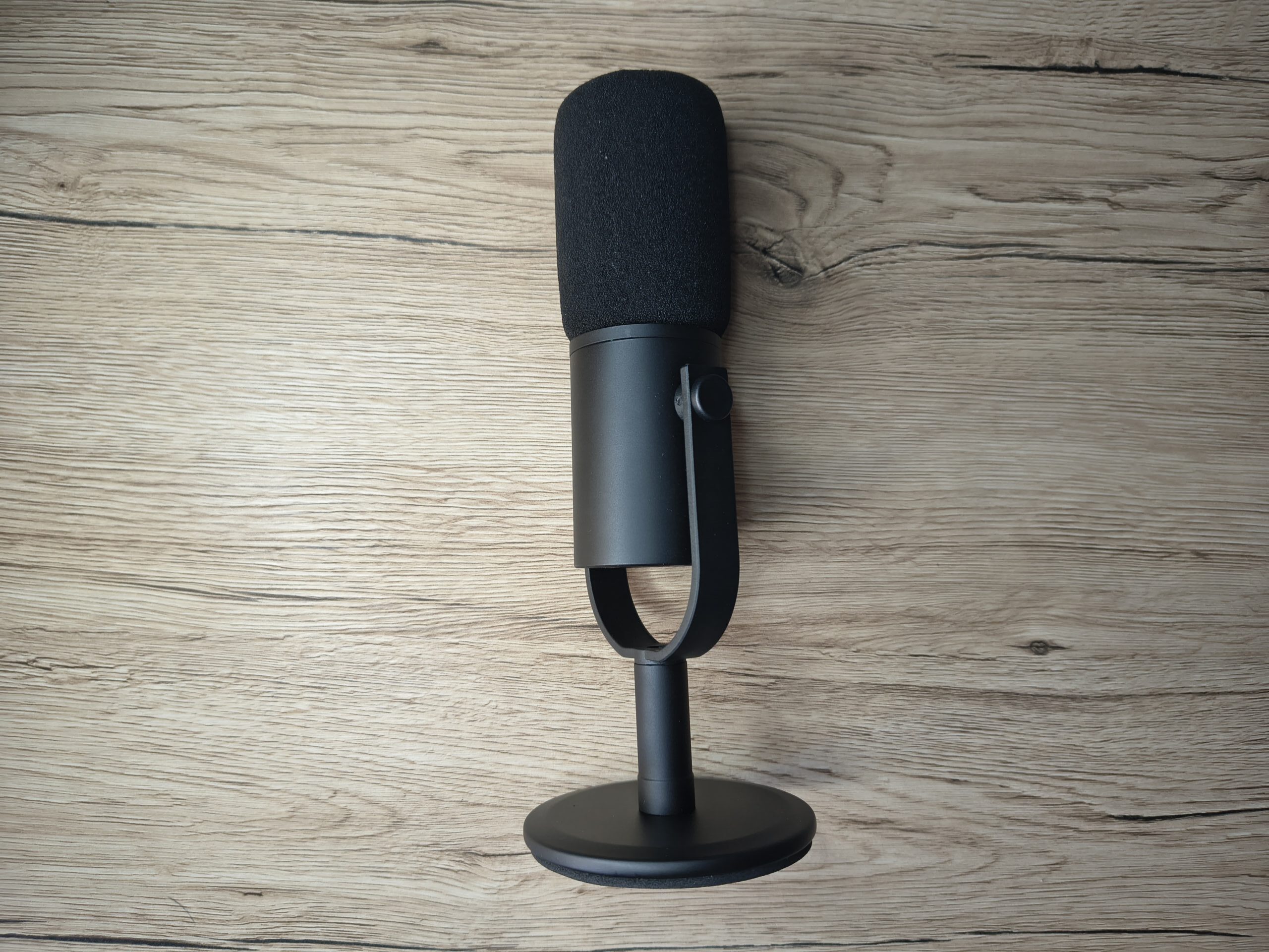 Nie wszystkie elementy są jednak metalowe. Nóżka wykonana jest z solidnego tworzywa i nie budzi większych zastrzeżeń, ale uchwyt otaczający mikrofon delikatnie się ugina. Nie przeszkadza to w codziennym użytkowaniu, jednak czuć, że ten element jakościowo odstaje od ciężkiej, metalowej podstawy.