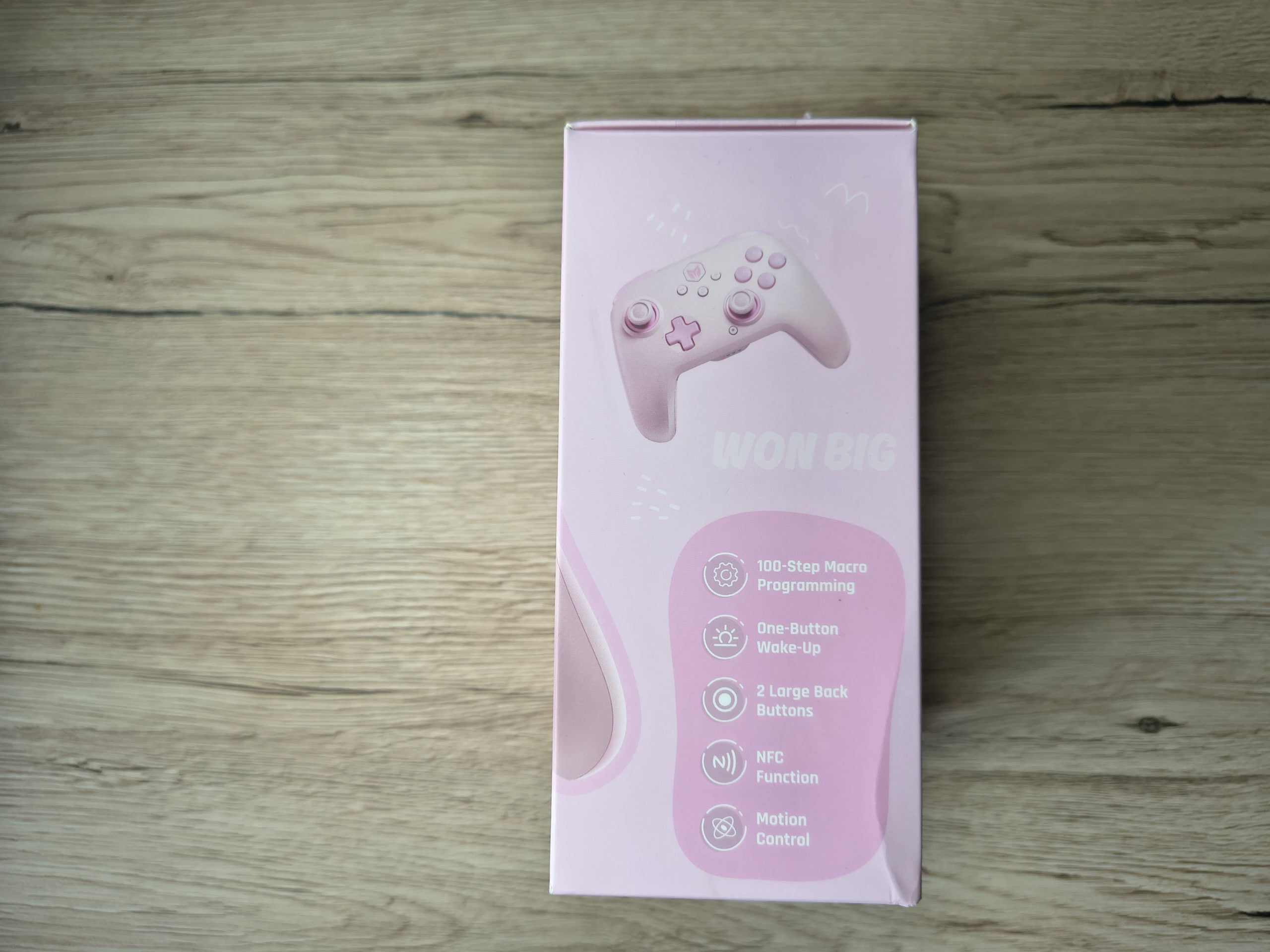 BIGBIG WON CHOCO trafia do użytkownika w niewielkim, różowym opakowaniu, które od razu przyciąga uwagę i dobrze wpisuje się w stylistykę samego kontrolera. Całość wygląda spójnie i estetycznie, przez co bez problemu można potraktować ten model jako ciekawy pomysł na prezent, szczególnie dla osób, które lubią bardziej wyróżniający się sprzęt gamingowy.
