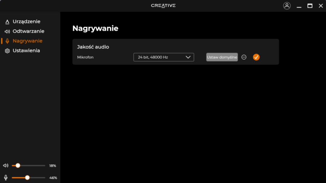 Aby móc w pełni skorzystać z potencjału słuchawek można zainstalować aplikację Creative. Jest to prosta apka, za pomocą której można sterować equalizerem, mikrofonem, sprawdzić stan naładowania akumulatora czy dokonać aktualizacji oprogramowania. Ważne! Aplikacja wymaga przewodowego podłączenia słuchawek do komputera.