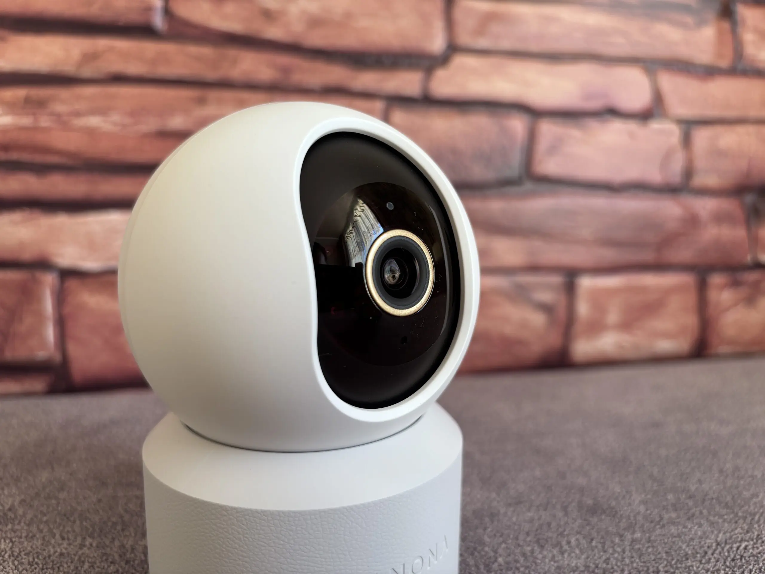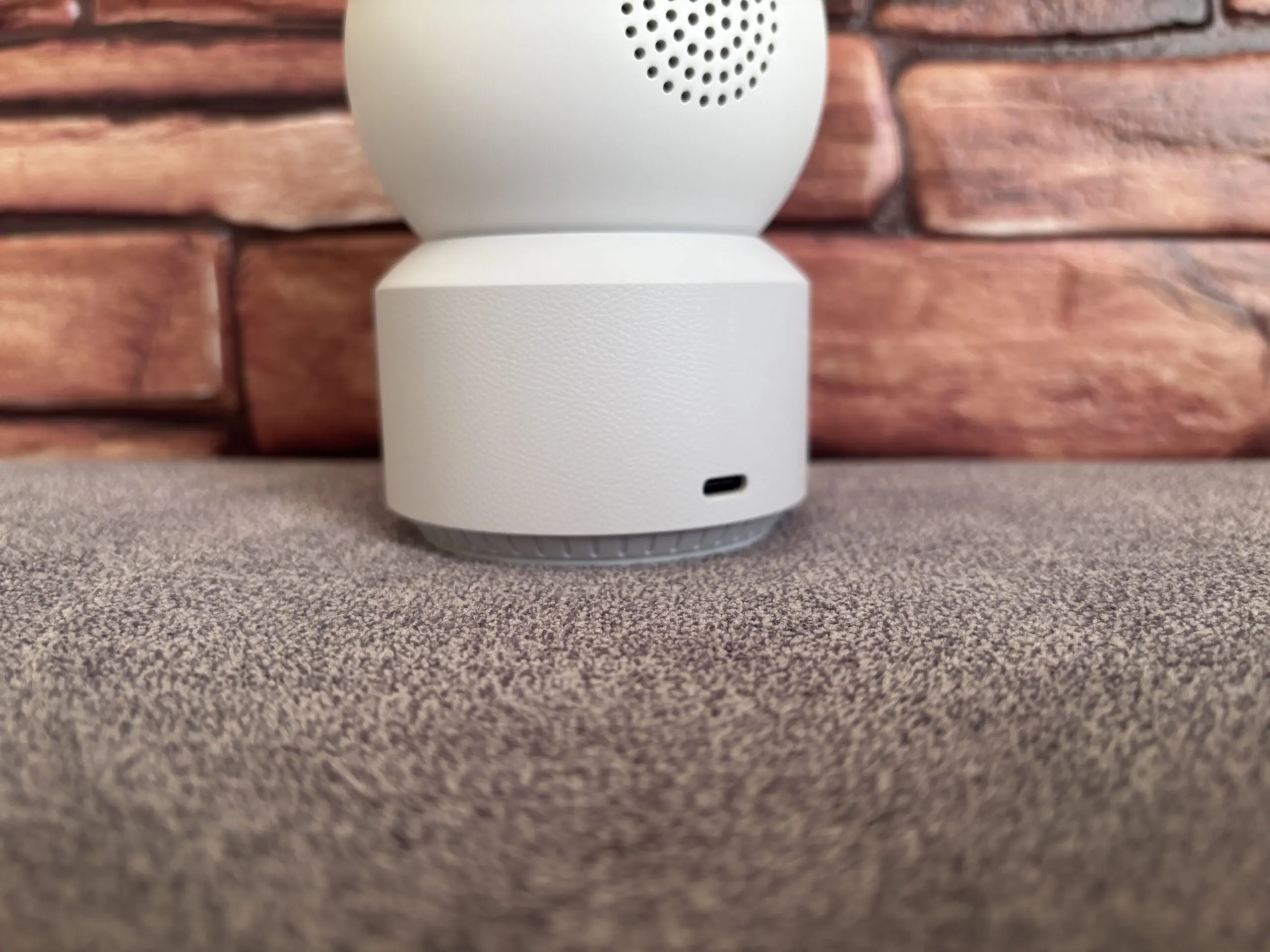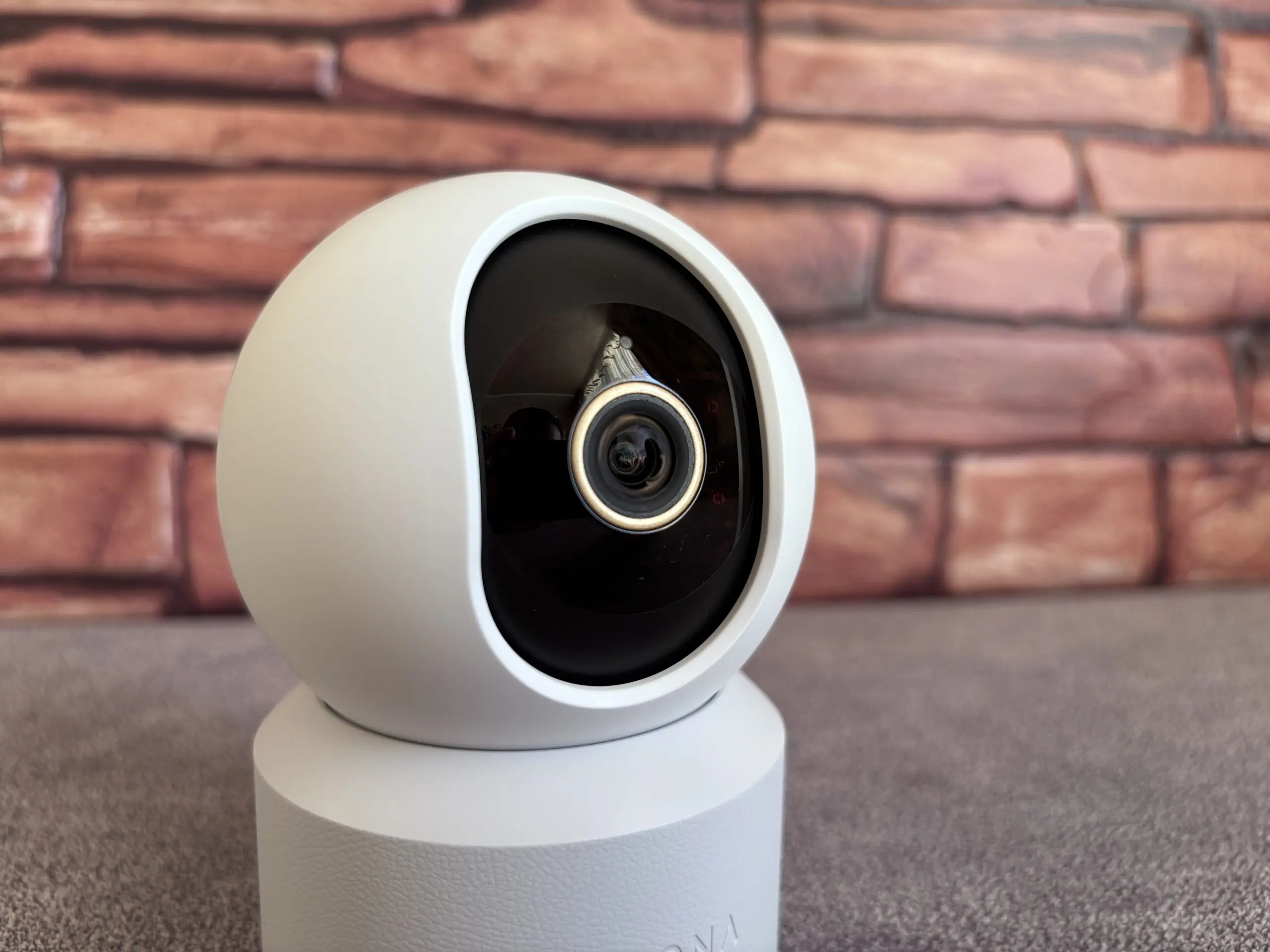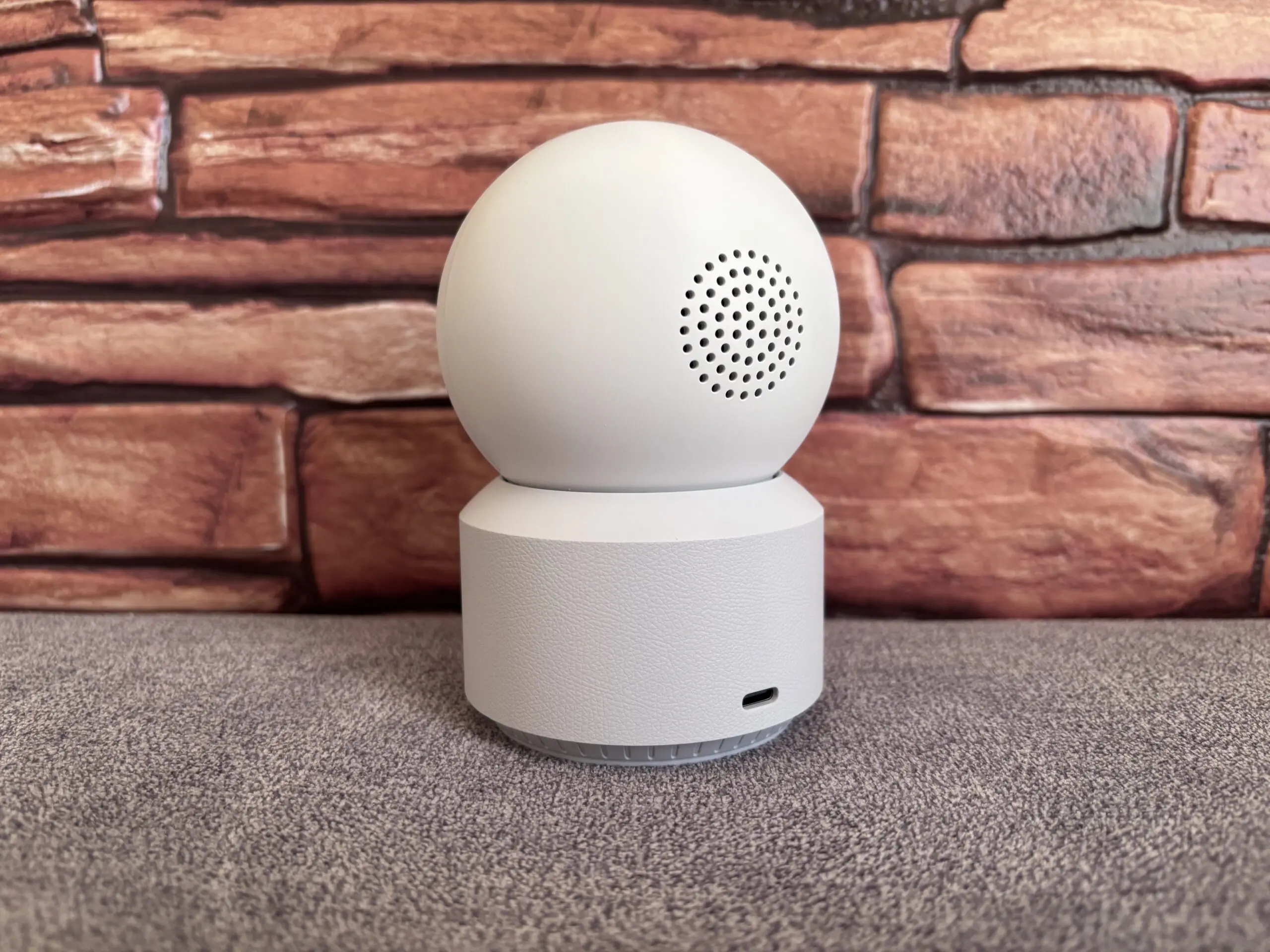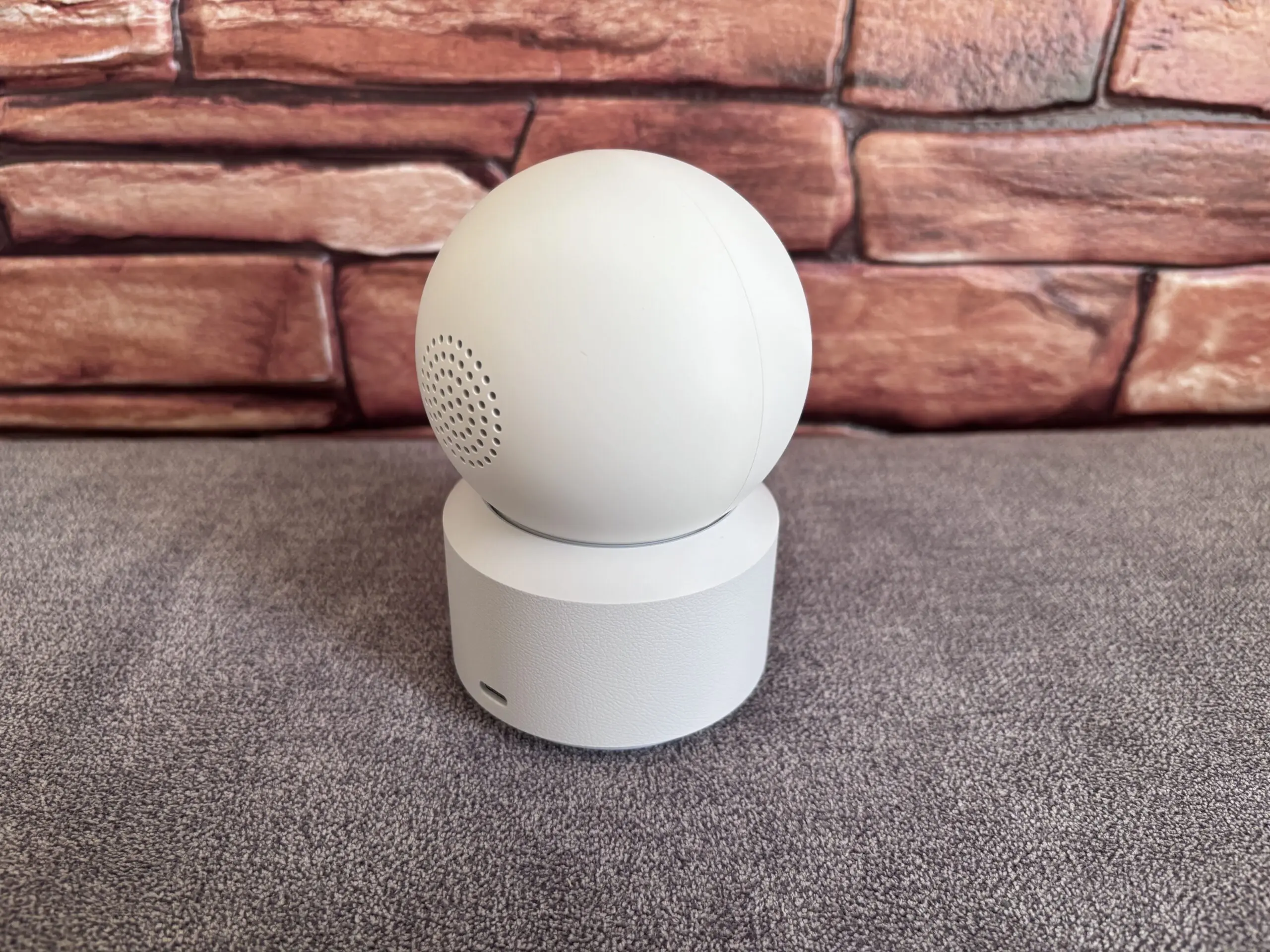 Kamera ma typową dla nowoczesnych urządzeń bryłę: okrągła głowica zamontowana na niskiej podstawie.