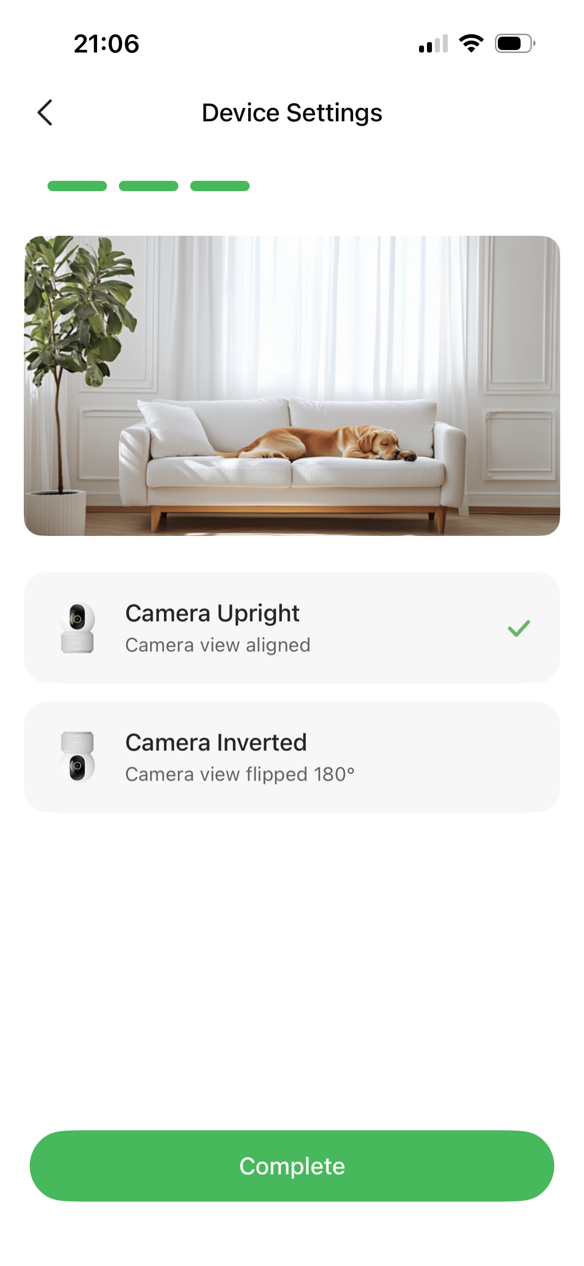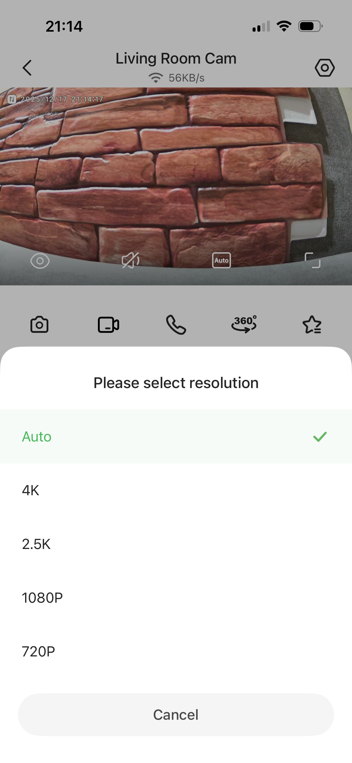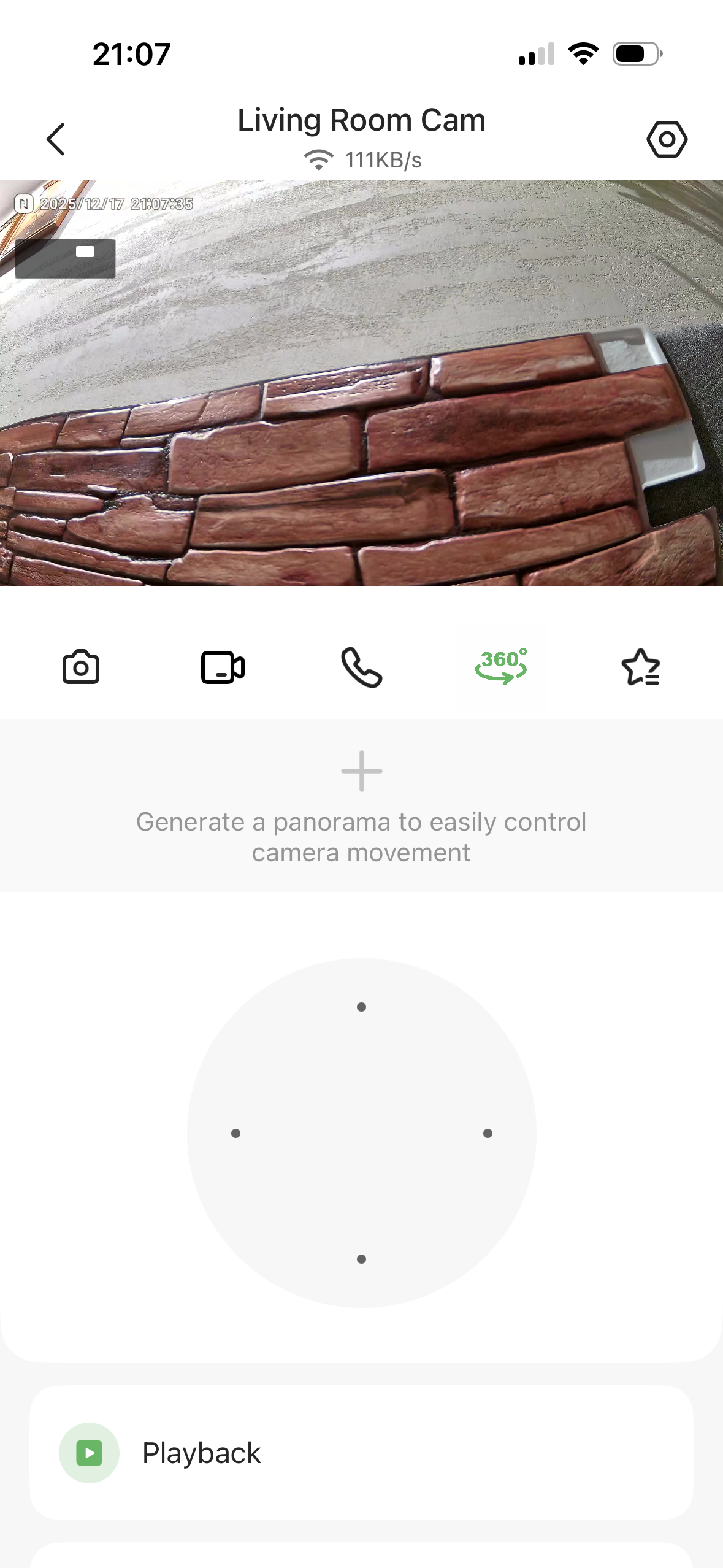 Po dodaniu urządzenia na ekranie głównym pojawia się podgląd z kamery na żywo. To właśnie tutaj spędza się najwięcej czasu. Obraz jest płynny i szczegółowy, a sterowanie kamerą odbywa się intuicyjnie – palcem przesuwasz wirtualny joystick, aby obrócić kamerę w lewo, prawo, w górę lub w dół. Jeśli nie chcesz sterować kamerą ręcznie, możesz włączyć tryb automatycznego śledzenia. Wtedy kamera sama podąża za poruszającą się osobą lub zwierzęciem, utrzymując je w kadrze.