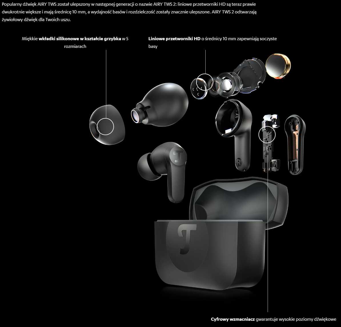 Airy TWS 2… to już zupełnie inny poziom. Dźwięk jest pełniejszy, cieplejszy i bardziej dojrzały. Producent nie zmienił charakteru brzmienia, tylko go rozwinął.
