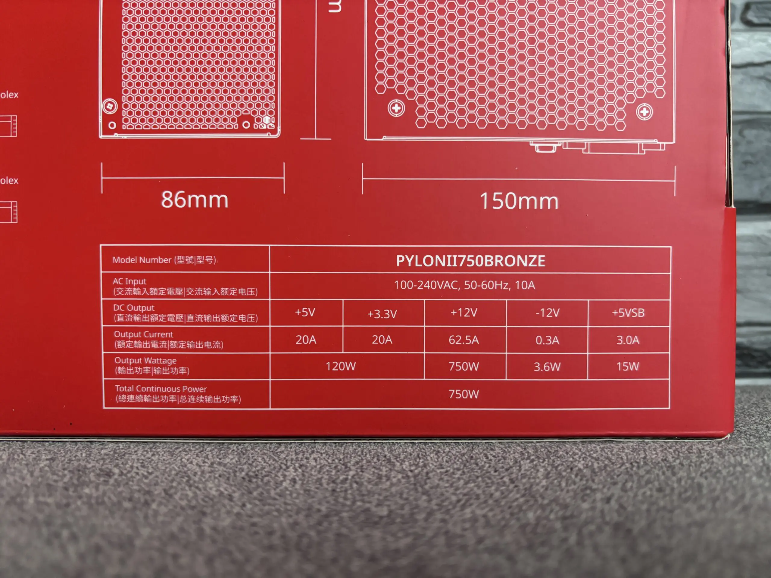 Najważniejszym punktem specyfikacji jest linia +12 V. W XPG Pylon II 750W oferuje ona 62,5 A, czyli pełne 750 W. I właśnie tak powinno to wyglądać w zasilaczu przeznaczonym do współczesnego komputera gamingowego. Procesor i karta graficzna korzystają przede wszystkim z tej linii, dlatego nie ma tu miejsca na półśrodki.