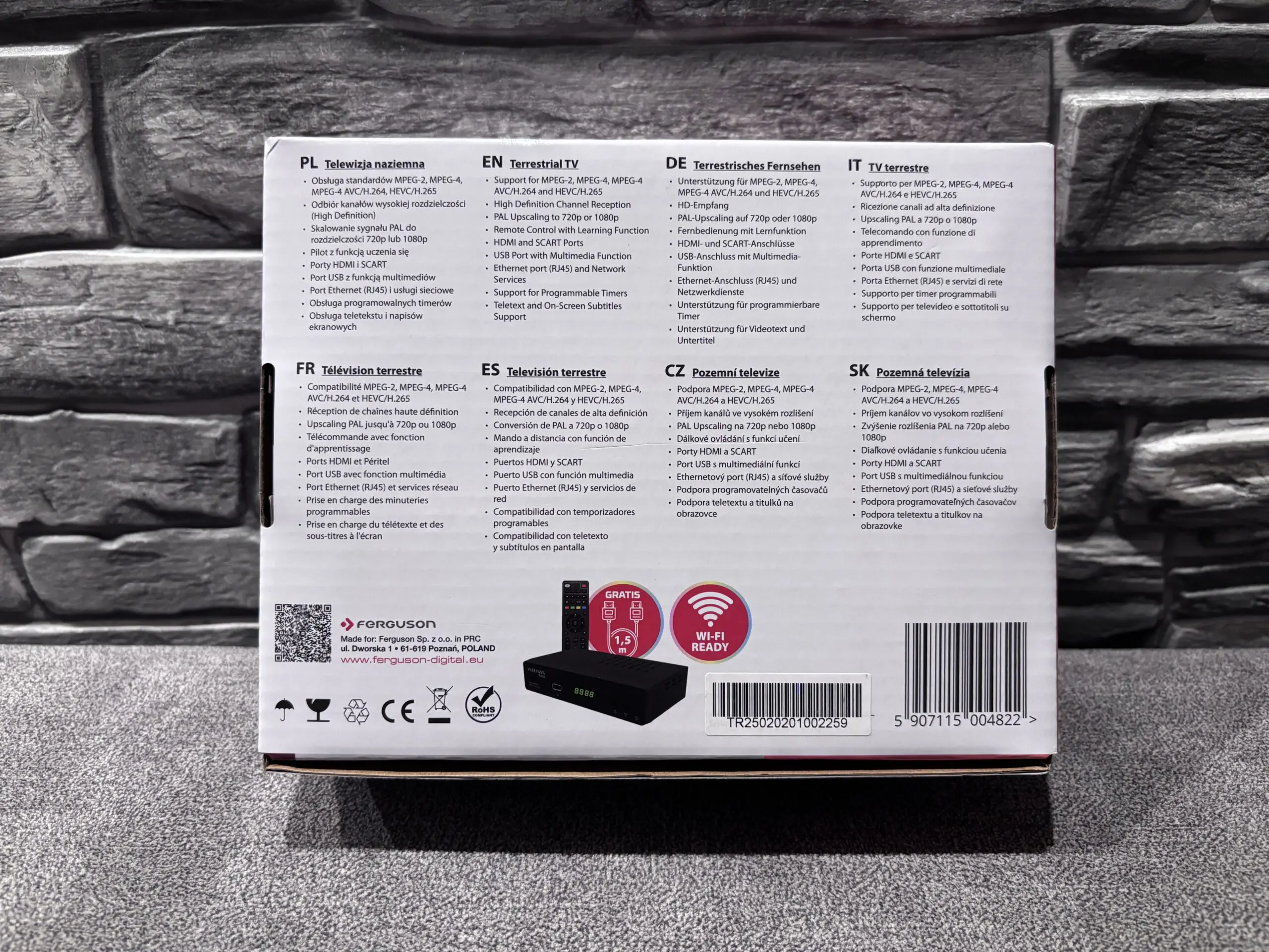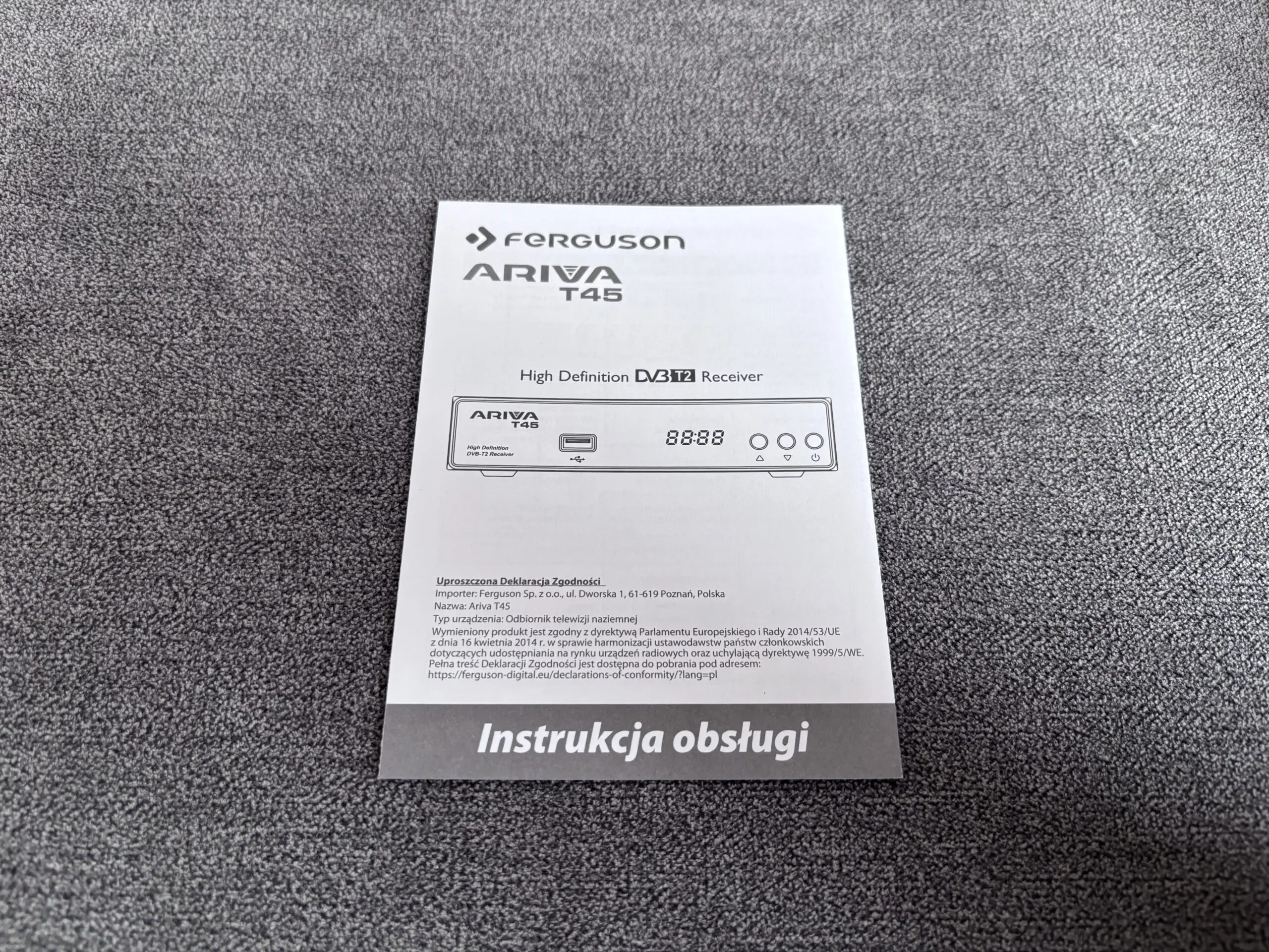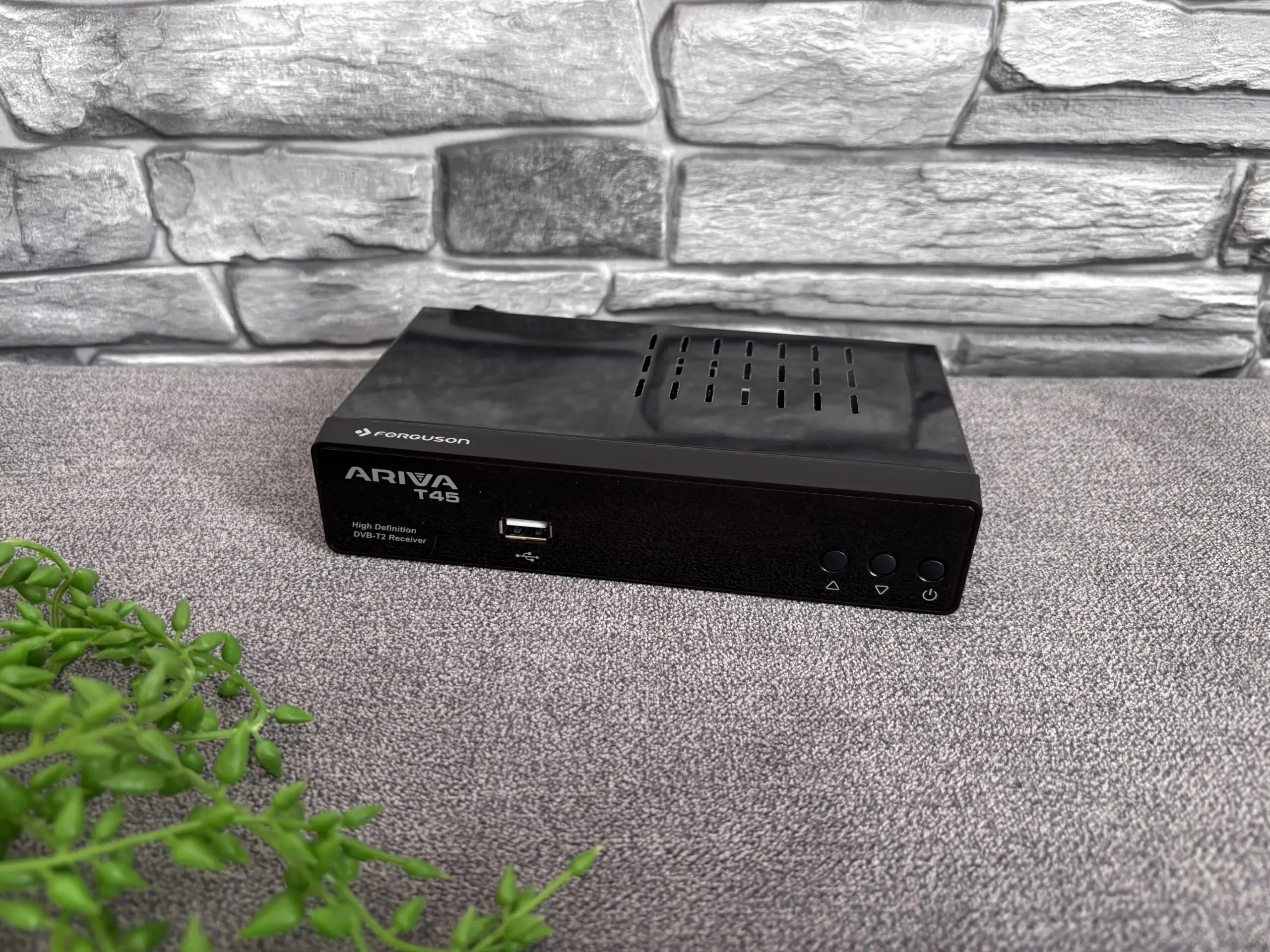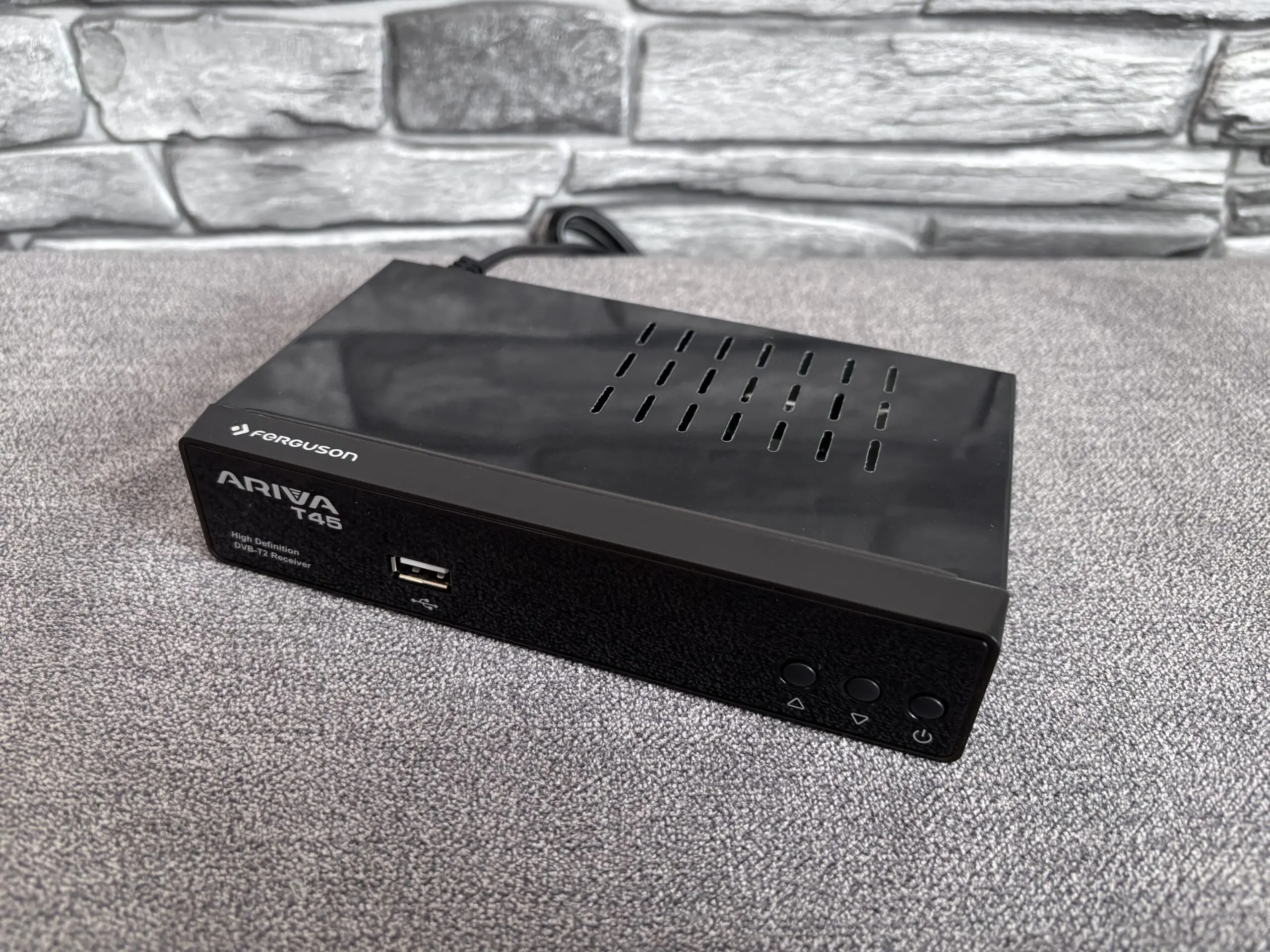 Ferguson Ariva T45 to dobrej jakości odbiornik telewizji naziemnej, dzięki któremu posiadacze starszych telewizorów, będą mogli oglądać najnowsze programy telewizyjne zgodne z DVB-T2. Urządzenie to cechuje się bardzo dobrą jakością wykonania i ciekawą stylistyką nawiązującą do popularnego ostatnio piano black. Niestety ma to też swoje wady w postaci widocznego kurzu oraz odcisków palców. Tuner cechuje się również przemyślaną konstrukcją z ażurową budową, która dba o właściwe warunki termiczne. „Te czterdziestka piątka” oferuje również możliwość podłączenia (poprzez port USB) adaptera Wi-Fi albo zewnętrznej pamięci i skorzystania z funkcji Timeshift albo PVR. Menu OSD ma przyjemną dla oka grafikę lecz oferuje jedynie podstawowe opcje konfiguracji. Pierwsza instalacja jest naprawdę intuicyjna i jesteśmy wręcz prowadzeni za przysłowiową „rączkę”. Dodatkowo urządzenie oferuje obsługę kodowania obrazu H.265 HEVC zgodnie z najnowszymi europejskimi standardami nadawania telewizji naziemnej. Tuner posiada czysty i niezaszumiony obraz. Czy posiada jakieś wady? Poza niemiłosiernie palcującą się obudową (tak, nie jestem zwolennikiem piano black mimo tego, że wygląda ono obłędnie!) brakuje nieco bardziej rozbudowanego menu oraz informacji o postępach czasowych danych programów telewizyjnych. Jest to jednakże bardziej budżetowy tuner przeznaczony głównie dla starszego lub mniej obeznanego z nowinkami technologicznymi użytkownika a dzięki pilotowi z funkcją uczenia, T45’tka pozwoli obsługiwać telewizor i tuner jednym tylko urządzeniem. Myślę, że tutaj tuner ten będzie sprawdzał się idealnie.