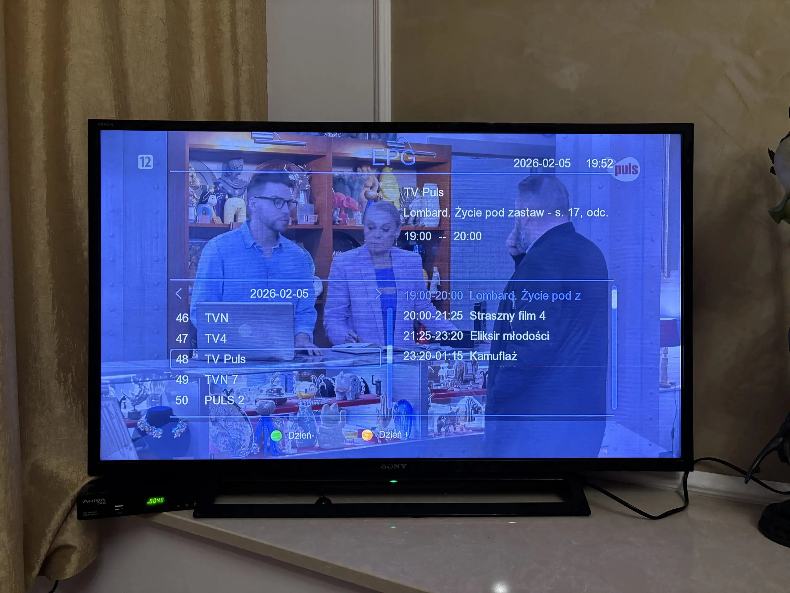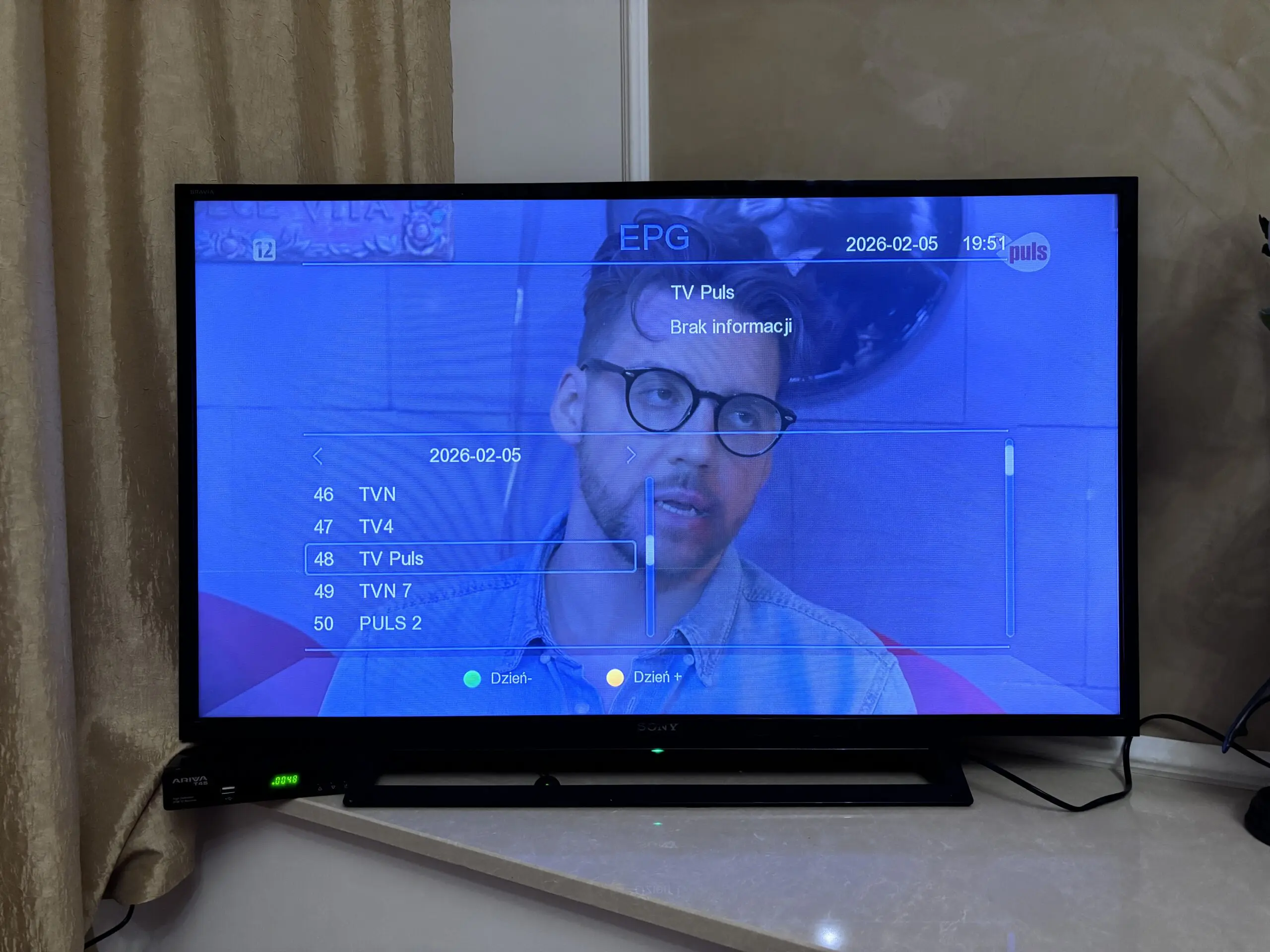 Po znalezieniu wszystkich kanałów jest możliwość odbioru programów. Jakość wyświetlanego obrazu jest dobra (obsługa rozdzielczości HD i Full HD), nie widać jakiejś szczególnej degradacji czy zaszumienia. Uważni czytelnicy pewnie dostrzegą zmianę telewizora a to dlatego, że coś popsuło się z gniazdem antenowym w telewizorze na górze i nie znajdowało programów. Musiałem posiłkować się awaryjnym gniazdem i telewizorem.